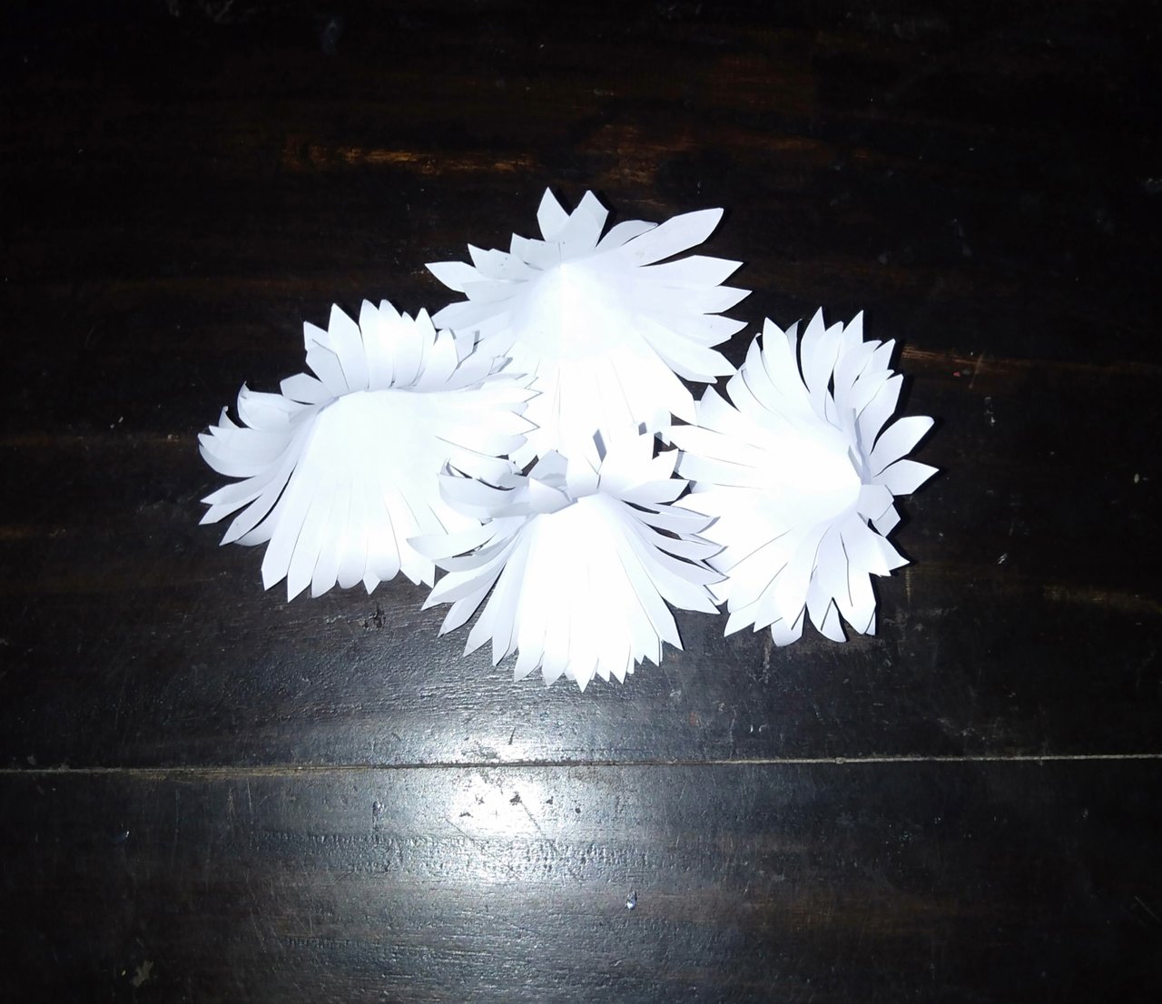 চারটি বৃও বানিয়ে নিয়ে মাঝ বরাবর কেটে নেই। এরপর হাত দিয়ে পেচিয়ে ফুল বানিয়ে নেই।