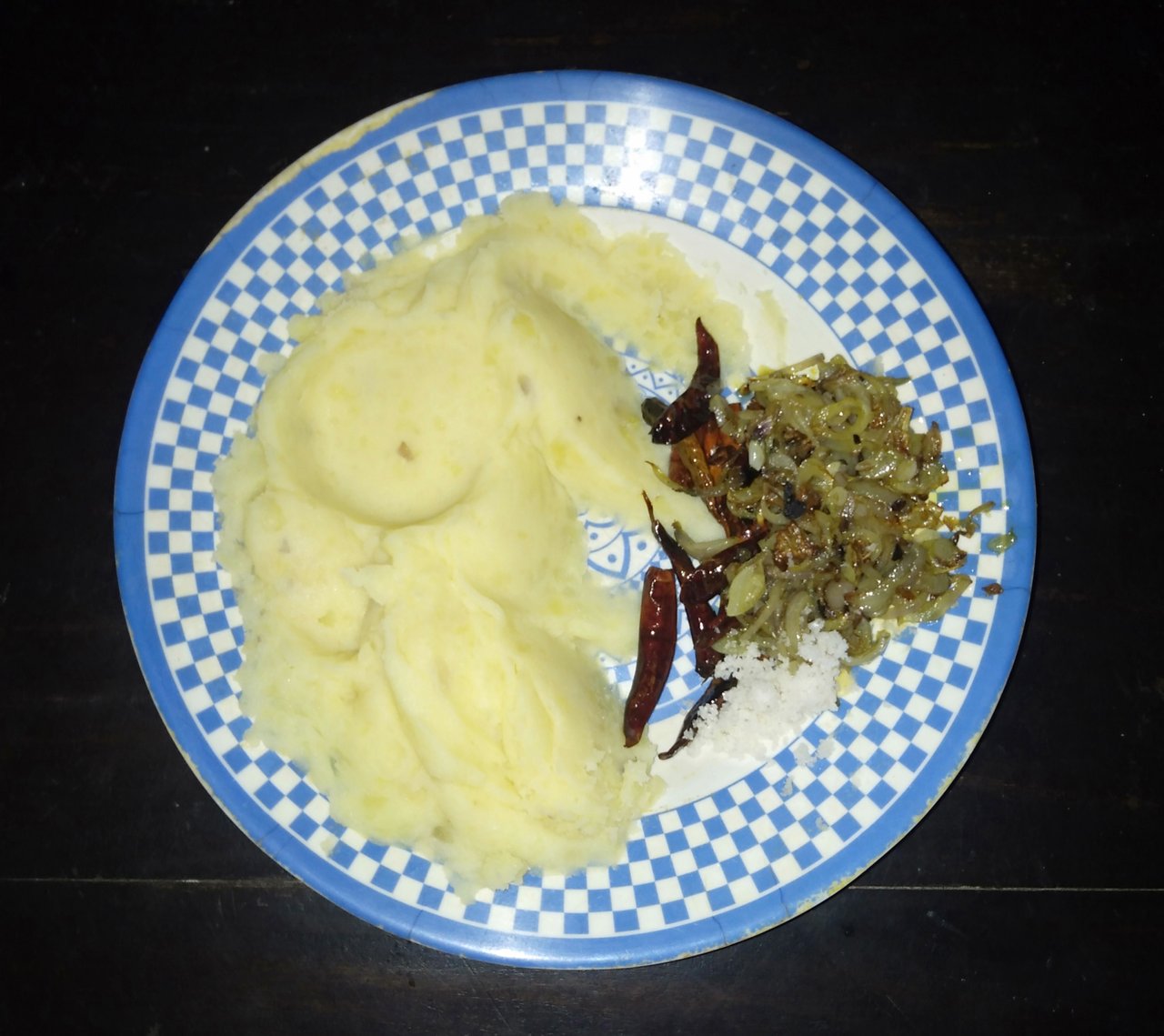 সিদ্ধ করে নেওয়া আলু গুলো ভালোভাবে মিশিয়ে নেই । এরপর ভেজে নেওয়া শুকনো মরিচ, পিঁয়াজ ও লবণ দিয়ে আবার ভালোভাবে মিশিয়ে নেই।