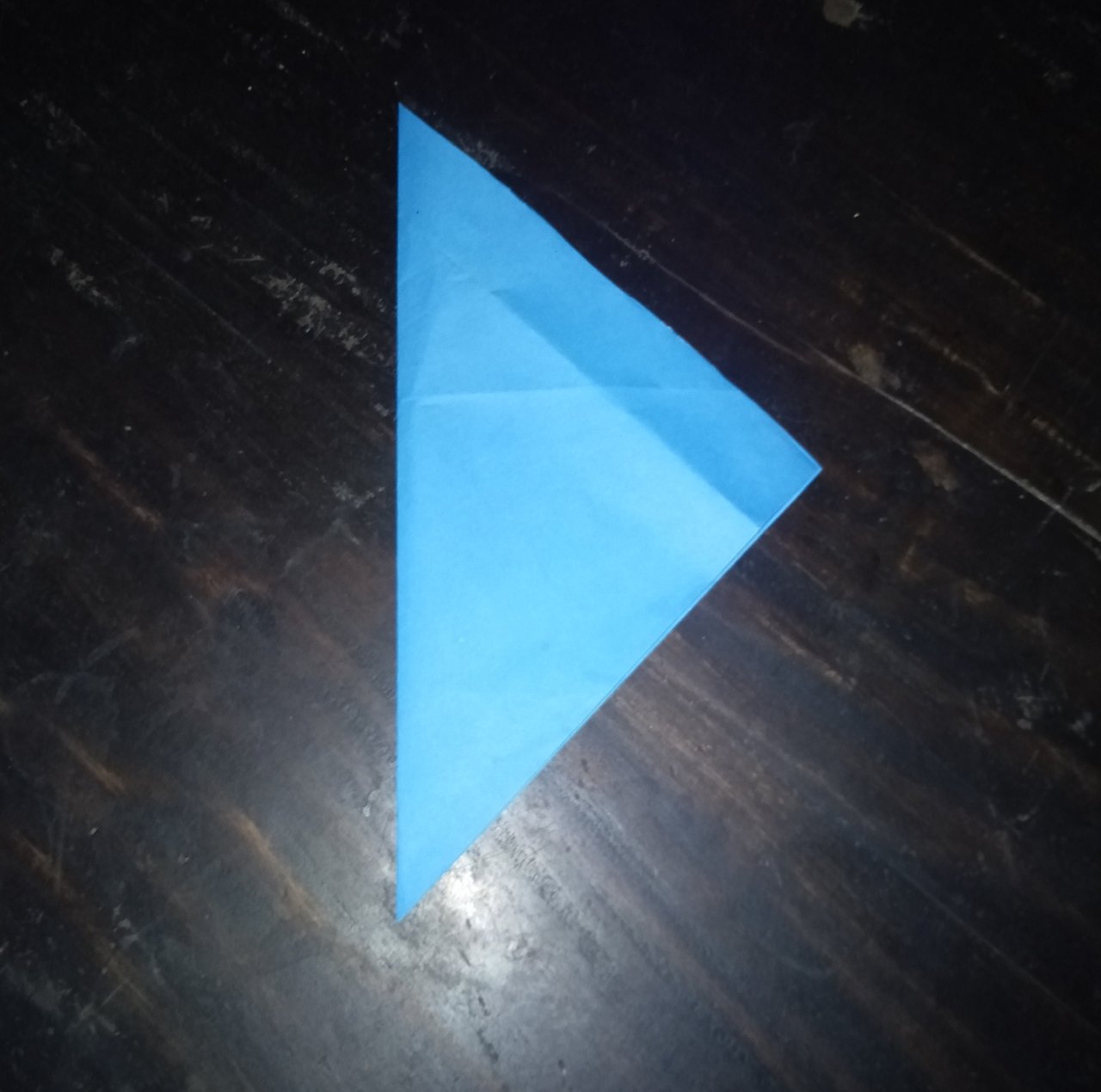 নীল রঙিন কাগজ আবার ত্রিভুজ আকৃতির মতো করে ছোট করে দুবার ভাঁজ করে নেই।