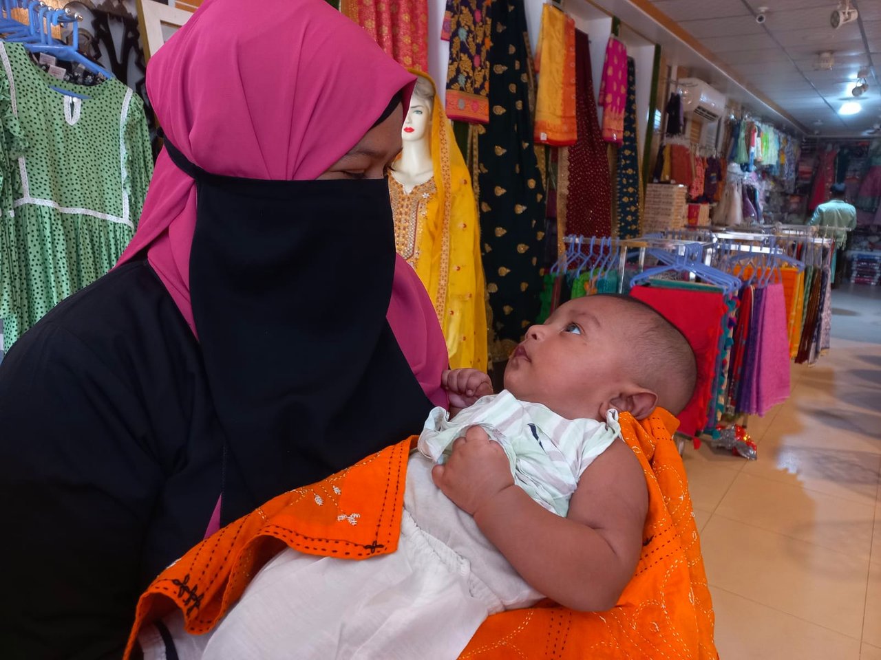 তারপরও গেলাম,ভাবলাম যতটুকু সময় দিতে পারি। এইজন্য আমি ১৮ তারিখ সকাল বেলা বাবুকে গোসল করিয়ে রেডি করে নিলাম। তারপর আমি রেডি হলাম। যদিও আমাদের যেতে কিছুটা লেট হয়ে গিয়েছিল। আমরা বলেছিলাম যে আমরা যাওয়ার জন্য অপেক্ষা না করতে। তারা যেন কিছু কেনাকাটা শুরু করে দেয়। সেই হিসেবে তারা তাদের পছন্দসই জামা কাপড় গুলো নিয়ে আলাদা সাইডে রেখে দিল।