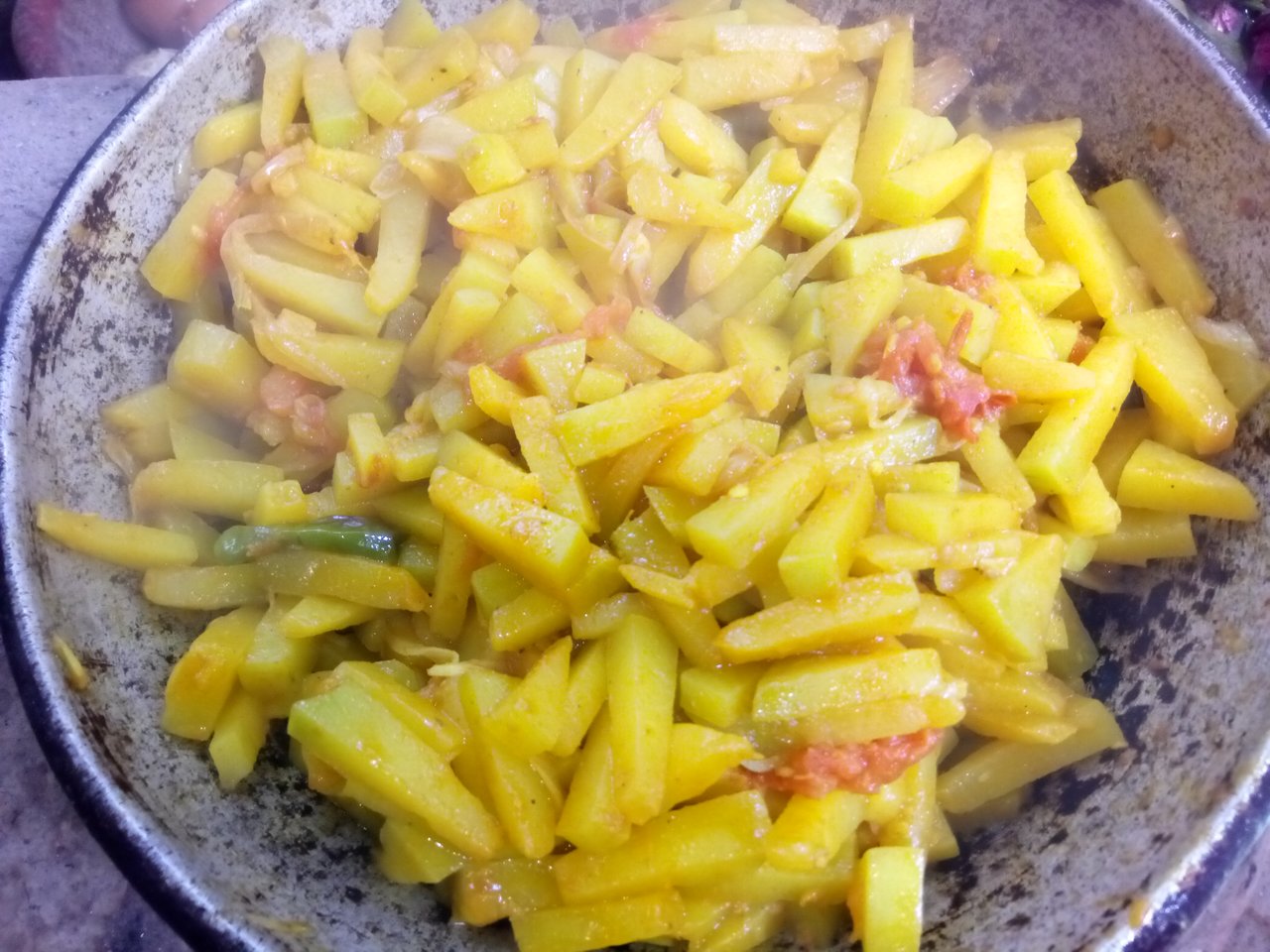 এভাবে আমি ভাজতে থাকলাম আর মাঝেমধ্যে ঢাকনা তুলে নেড়েচেড়ে দিতে থাকলাম।