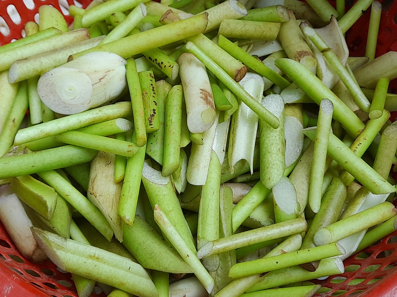প্রথমে কচুর ডাটা গুলো ছোট ছোট করে কেটে নিলাম।তারপর ভালোভাবে ধুয়ে নিলাম পানি দিয়ে।