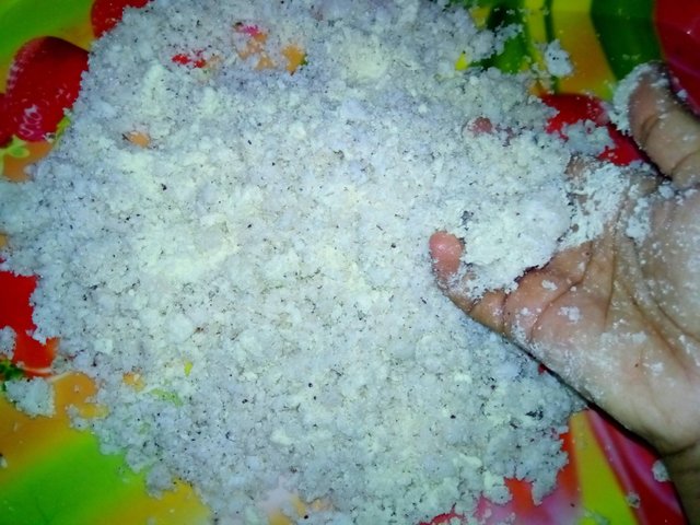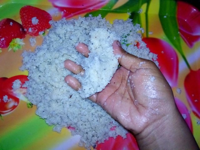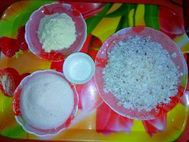 একটি ট্রে তে আমি কোরানো নারকেল নিয়ে নিলাম।