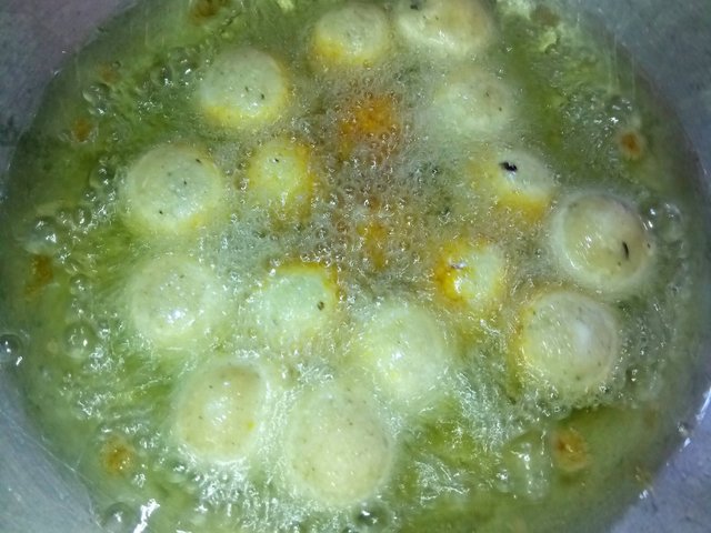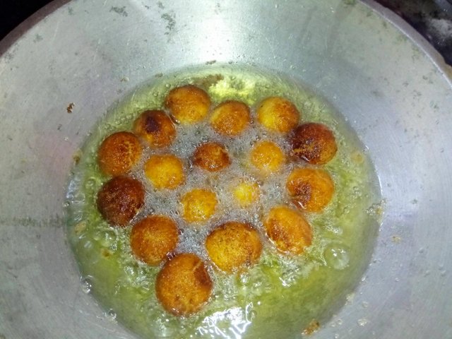 তেল গরম হয়ে এলে এরমধ্যে আমি একটি একটি করে পিঠা দিয়ে দিলাম। মিডিয়াম আঁচে এই পিঠাগুলো ভাজতে থাকলাম। ভাজতে ভাজতে পিঠার উপরের দিকের অংশ যখন বাদামী রঙ এর হয়ে আসে তখন ছাকনির সাহায্যে তেল ছাড়িয়ে তুলে নিলাম।