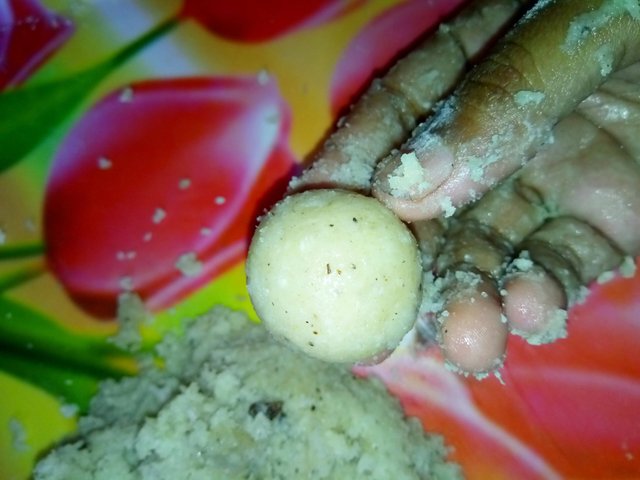 এই ডো টি এখন পিঠা তৈরি করার জন্য প্রস্তুত হয়ে গেল। এজন্য আমি হাতের তালুতে হালকা তেল মেখে নিলাম। এরপরে ছোট ছোট করে কিছুটা পরিমাণ ডো হাতে নিয়ে গোল করে একটি বল এর মত তৈরি করে নিলাম।