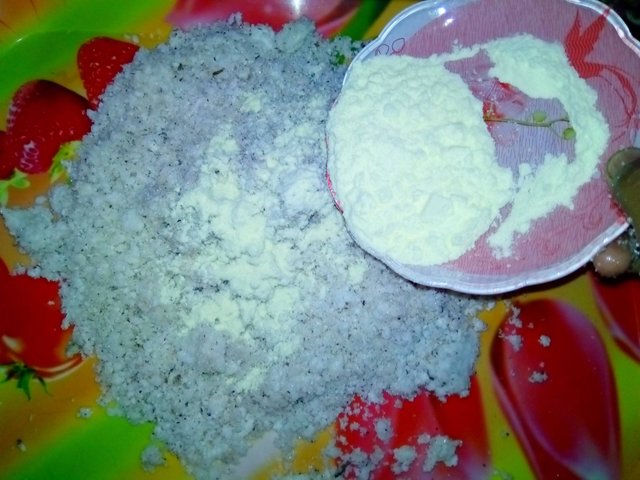 এরপরে এরমধ্যে দিয়ে দিলাম গুড়ো দুধ। গুড়ো দুধ দেয়ার পর আবারও ভালোভাবে মেখে নিলাম।