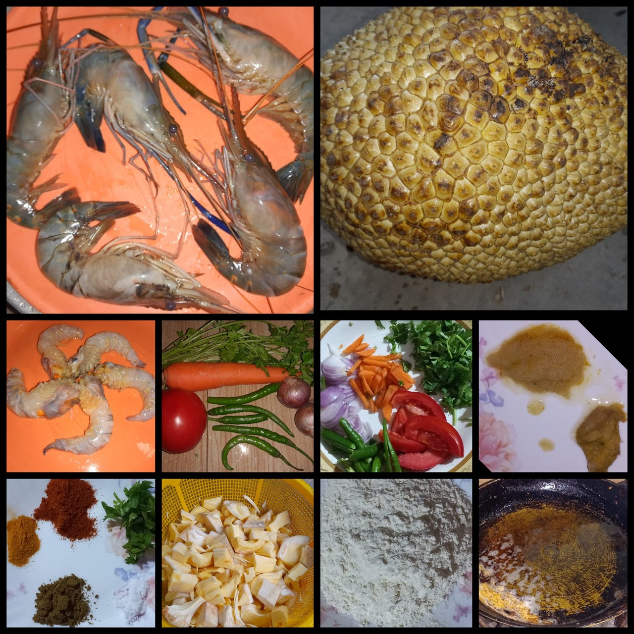 যাইহোক যখন রেসিপি কনটেস্টটি চলে এসেছে তখনই চিন্তা করতে থাকলাম কোনটি তৈরি করা যায়। যেহেতু সবসময় ইউনিক কিছু করার চেষ্টা করি সেই হিসেবে চিংড়ি মাছ দিয়ে ইউনিক রেসিপিগুলো খুঁজছিলাম। কিন্তু অনেকগুলো রেসিপি যেন মাথার মধ্যে ঘুরপাক খাচ্ছিল। কোনটা রেখে কোনটা করব ভেবেই পাচ্ছিলাম না। অবশেষে চিংড়ির আচার, ডাব চিংড়ি এবং চিংড়ির পুর ভরা এঁচোড়ের কোপ্তা কারি এই তিনটি সিলেক্ট করলাম। তার মধ্যে ভাবলাম এঁচোড় যেহেতু খুব সহজে পাওয়া যাবেনা তাই আমি এটি ব্যবস্থা করেই তৈরি করব। যাই হোক এইবারও এঁচোড় সংগ্রহ করতে খুব বেশি কষ্ট না হলেও দুইদিন সময় লেগেছে। কারণ আমি আম্মুকে আবারও কল দিলাম এঁচোড় আছে কিনা দেখতে। তখন আম্মু দেখলো এখনো গাছের মধ্যে ছোট ছোট ৩ টি রয়েছে। তার মধ্যে এটি কিছুটা বড়। আর আমি বললাম যেভাবেই হোক আমার জন্য একটি পাঠিয়ে দিতে। সেই হিসেবেই আম্মু একটি এঁচোড় পাঠিয়ে দিল।আর আমিও লেগে পড়লাম এই ইউনিক রেসিপির পিছনে।