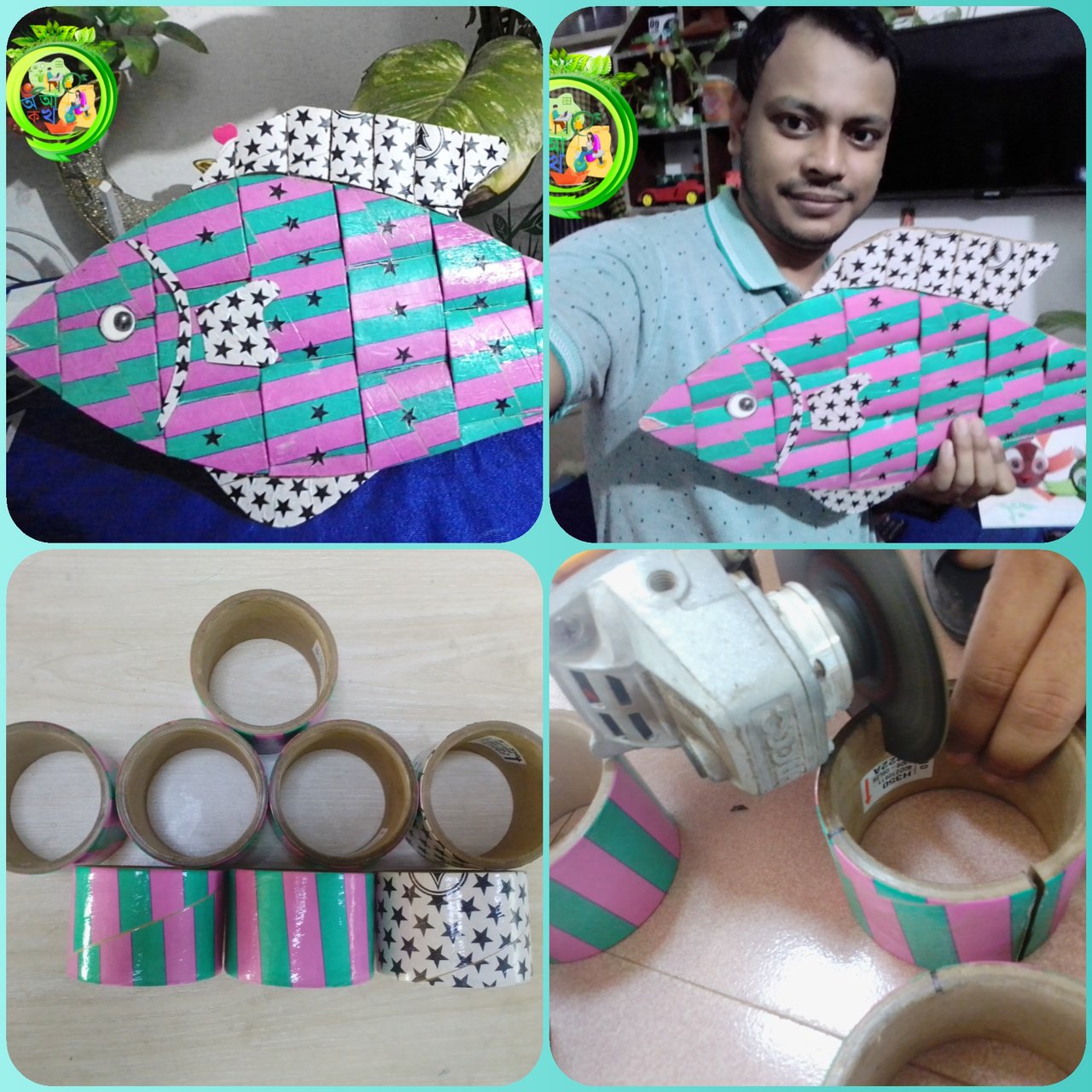 আমি আজকে আপনাদের একটি মাছ তৈরি করে দেখাবো যা আমার অফিসের কিছু ফেলনা সুতার কোর দিয়ে তৈরি। অফিসে আজ কাজের চাপ একেবারেই কম ছিল তাই অনেক চিন্তা করে এটি বের করলাম। চোখের সামনে কিছু সুতার কোর দেখতে পেলাম। মাথায় হঠাৎ চিন্তা এলো এইটা দিয়ে কিছু একটা বানাবো কিন্তু কি? অবশেষে এগুলোর রং দেখে মাছ তৈরি করতে ইচ্ছে হলো। তাই শুরু করে দিলাম। কিন্তু কিছুক্ষণ পরেই বুঝতে পারলাম বিষয়টি অনেক কঠিন। কারন আমি যে নকশা চিন্তা করছি সেটি হ্যান্ড গ্রাইন্ডার দিয়ে কেটে তৈরি করতে হবে। যাক কাজটি শুরু করার পর আমার মেশিন অপারেটর সাহায্যের জন্য এগিয়ে এলো এরপর কাজ এগিয়ে চলছিল কিন্তু হঠাৎ একটি টুকরো প্রায় হাত ফসকে গিয়ে আমার আংগুল বেঁচে যায়। মনে করেছিলাম কাজটি ওখানেই বন্ধ করবো কিন্তু মনকে বোঝাতে পারলাম না।