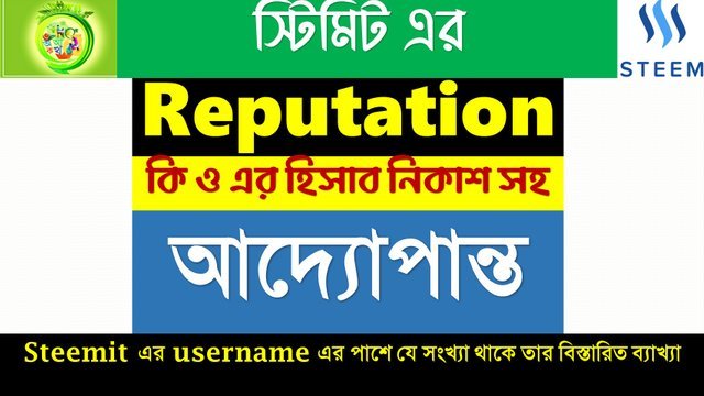 | পোস্টের আলোচ্য বিষয়ের সংক্ষিপ্ত বর্ননাঃ | স্টিমিটে রেপুটেশন কি, কিভাবে বৃদ্ধি পায়, কিভাবে কমে, কি কি বিষয়ের উপর রেপুটেশন নির্ভর করে, কিভাবে রেপুটেশন হিসাব করতে হয়, এক মানের রেপুটেশন হতে অন্যটি কতগুণ ভাল এবং আপনি কিভাবে আপনার রেপুটেশন বৃদ্ধি করতে পারবেন এ বিষয়ে বিস্তারিত আলোচনা। |