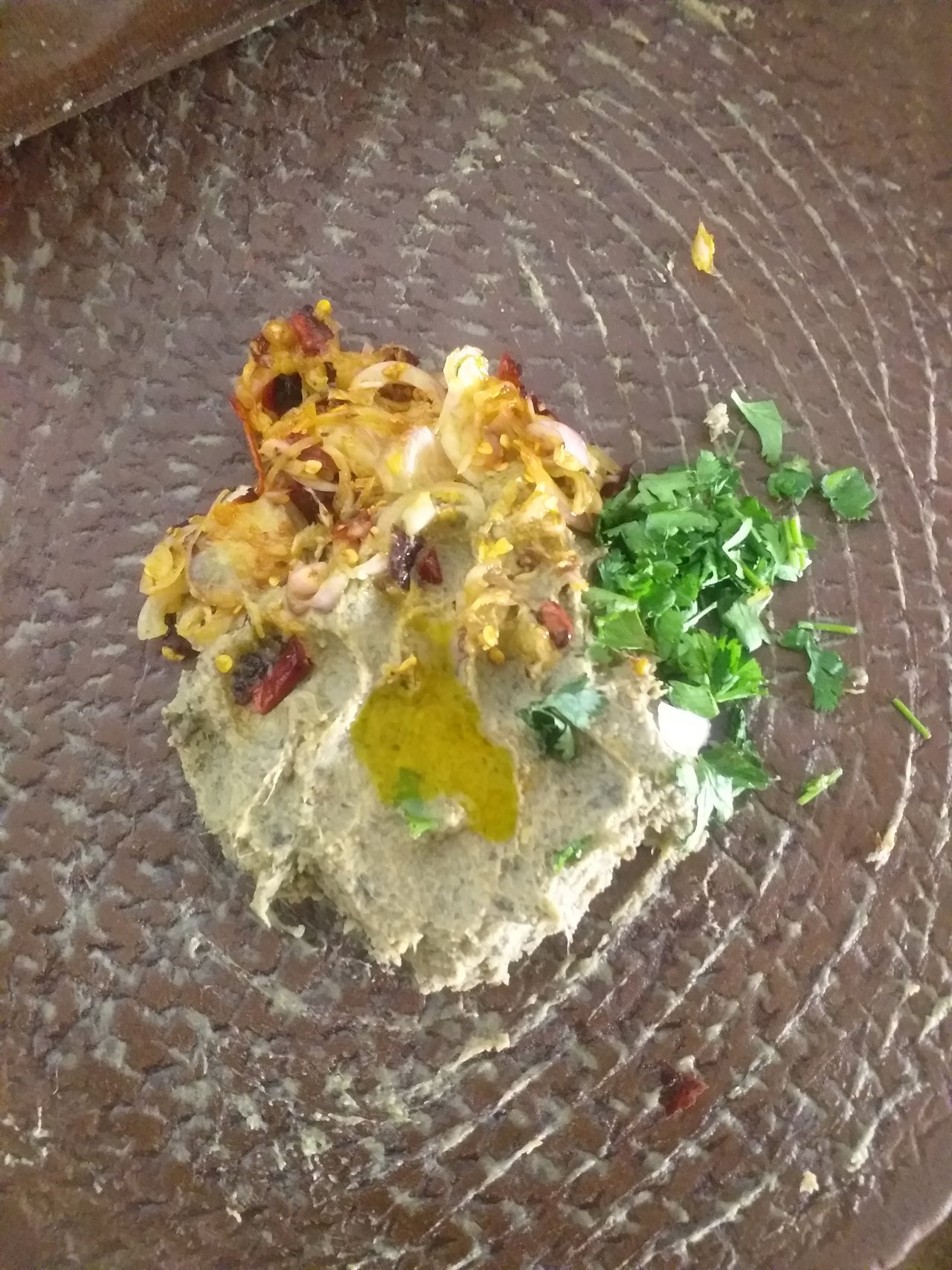 আমার বাটা হয়ে গেলে এর মধ্যে চাটনি, সরিষার তেল, ও লবণ, ধনিয়াপাতা গুলো দিয়ে সুন্দর করে মেখে নিলাম।