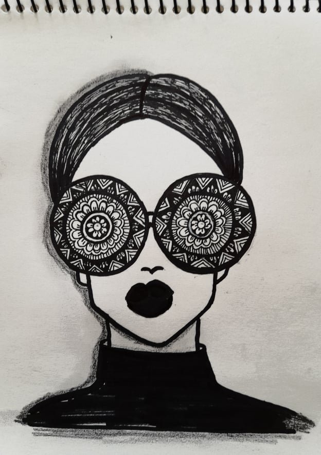 একটি মেয়ের মান্ডালা চশমা পরিধানকৃত চিত্রাংকন দেখতে অসাধারন হয়েছে।এই আর্টি বলব অনেক সুন্দর এবং মন মুগ্ধকার একটি চিত্রাঙ্কন। শুভেচ্ছা আপনার জন্য