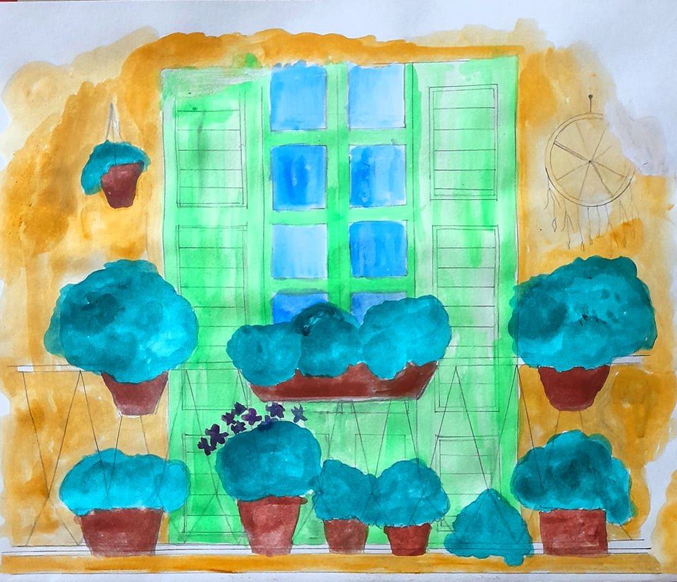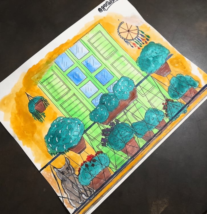 জল রং দিয়ে সুন্দর একটি বেলকুনির পেইন্টিং করেছেন বেলকুনিতে ঘুরে বেড়াতে আমার খুব ভালো লাগে আপনার চিত্রটা দেখে মনে হচ্ছে এখুনি বেলকুনিতে ঘুরে আসি অনেক অনেক সুন্দর হয়েছে পেইন্টিংটি ধন্যবাদ আমাদের সাথে শেয়ার করার জন্য শুভকামনা রইল আপু