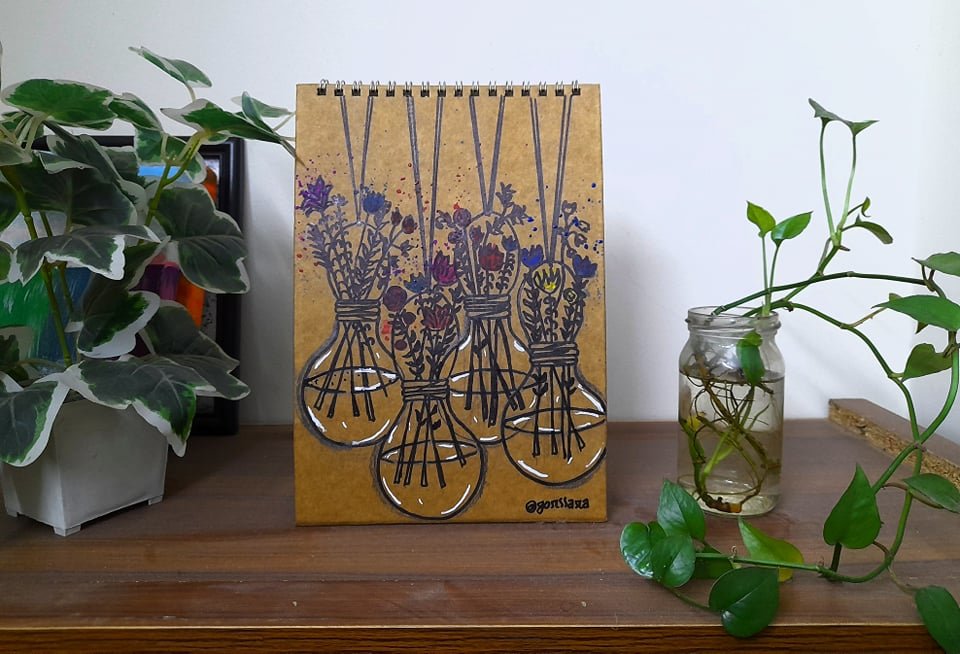 সবাই কেমন আছেন? আমি ভালো আছি। আশা করছি আপনারা ও ভালো আছেন। আমি আজকে আপনাদের সাথে নতুন একটি আর্ট পোস্ট শেয়ার করছি। আজকে আবারো আমার হাতের কাছে পুরাতন একটি ক্যালেন্ডার খুঁজে পেলাম। এবং এই ক্যালেন্ডারের শেষ পেইজটা ফাঁকা ছিল।আর আপনারা তো জানেন আমি এমন ফাঁকা পেইজ পেলেই পেন্সিল এবং রং-তুলি নিয়ে বসে যাই। আজকেও ঠিক তাই করলাম। কিন্তু খুব ভাবলাম যে কি ধরনের চিত্রাংকন করা যায়। আমি বরাবরই নিজের সবকিছুই সাজিয়ে গুছিয়ে রাখতে পছন্দ করি।তাই আমি সবসময় আমার রুমের একটি ও দেয়ালে কয়েকটি বাল্ব ঝুলিয়ে এর মধ্যে ফুলগাছ সাজিয়ে রাখতে চেয়েছিলাম।