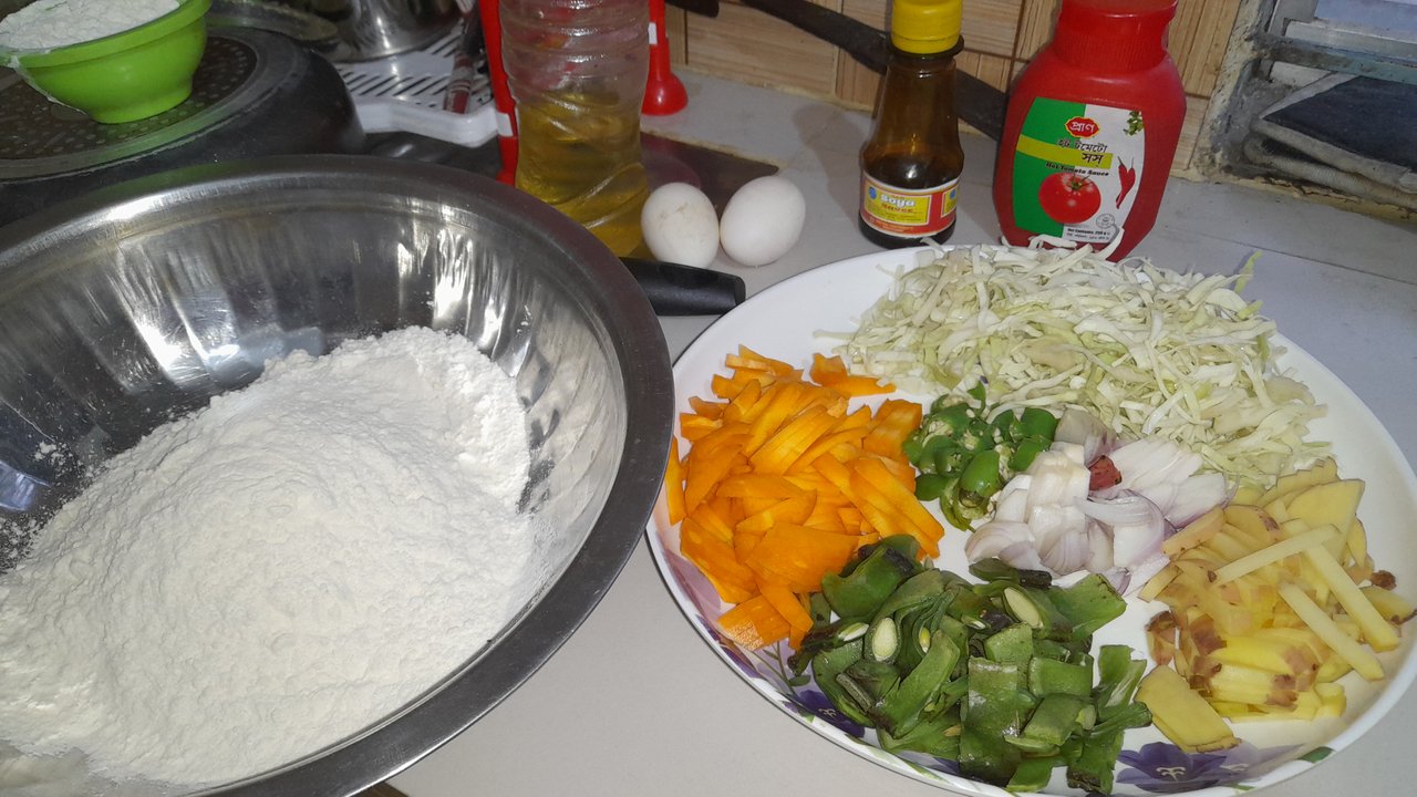 একটা বাটিতে সামান্য পরিমাণে ময়দা নিয়ে পানি দিয়ে ময়দাটাকে আমি ভারি বেটার বানিয়ে নিয়েছি।