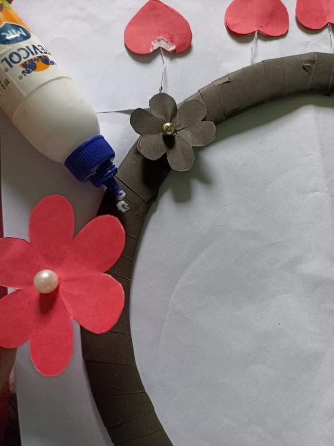 - তারপর আমি সুতোগুলো বড় থেকে ছোট অনুসারে গোল বৃত্তাকার অংশের পেছনে লাগিয়ে দিতে হবে।