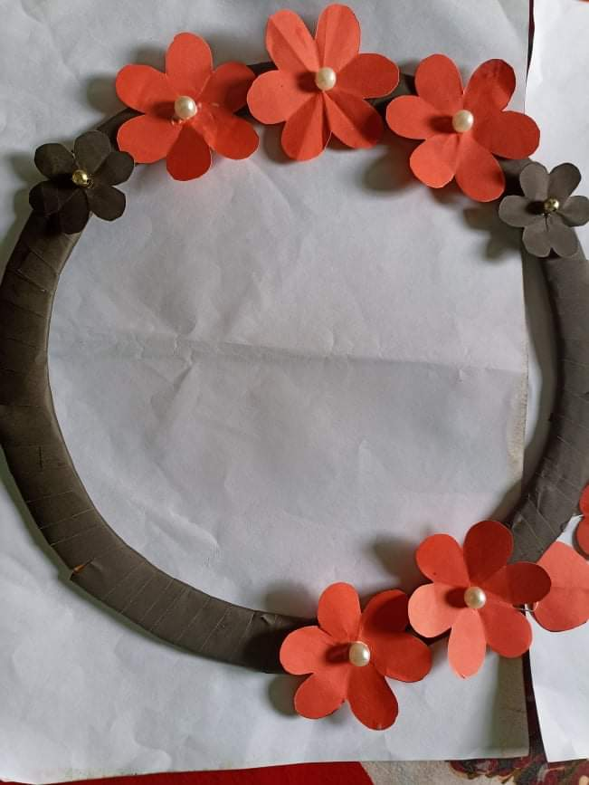 - তারপর কাগজটির মধ্যে কলম দিয়ে ফুলের কলি অঙ্কন করে নিয়েছি। এবং সেই অনুযায়ী কাগজ কেটে নিয়েছি।