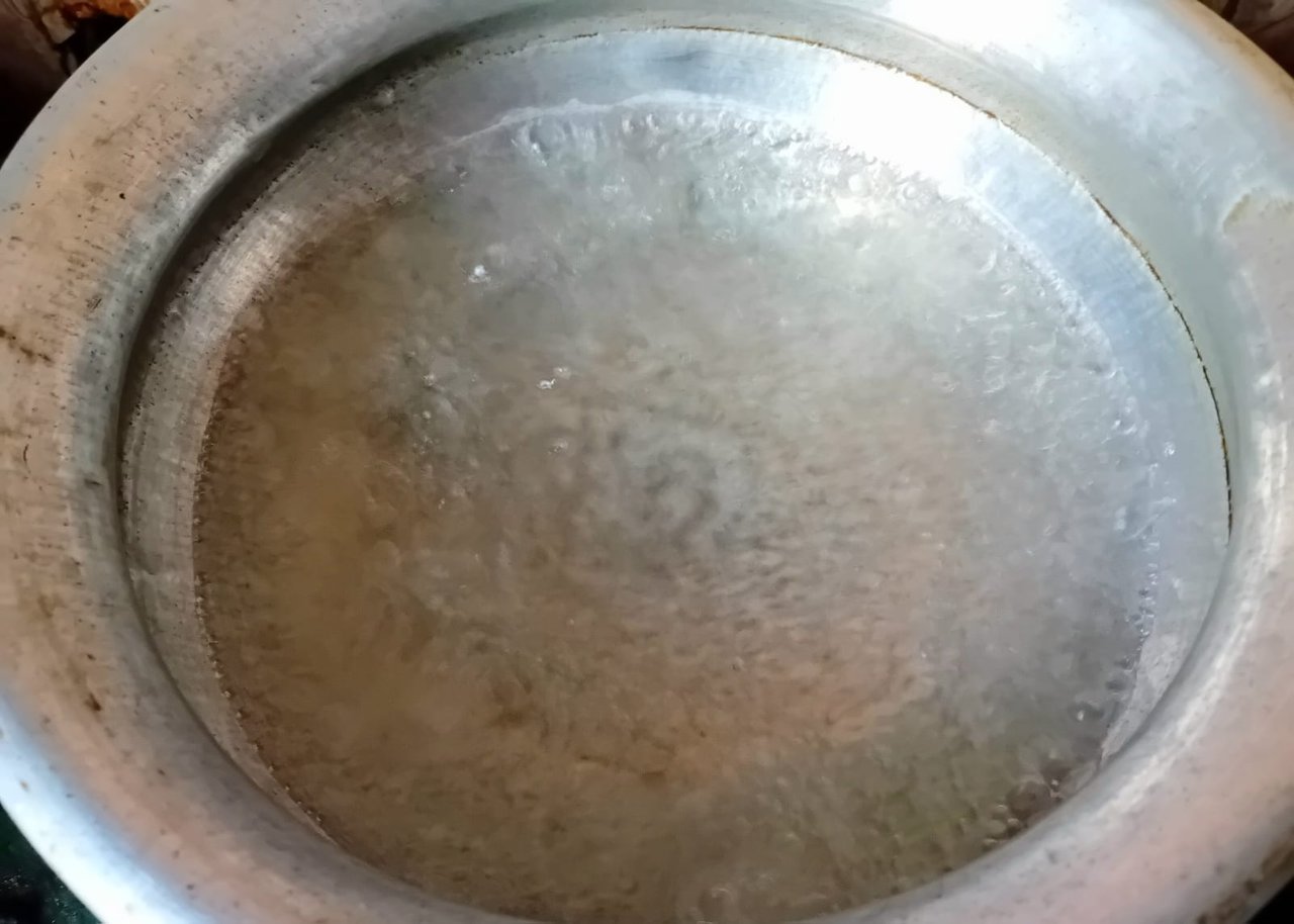 • এরপর অন্য একটি পাতিলে পরিমাণমতো পানি গরম করে নিয়েছি। তারপর ফুটন্ত পানি গুলোর মধ্যে পরিমাণ মতো লবণ দিয়ে দিয়েছি।