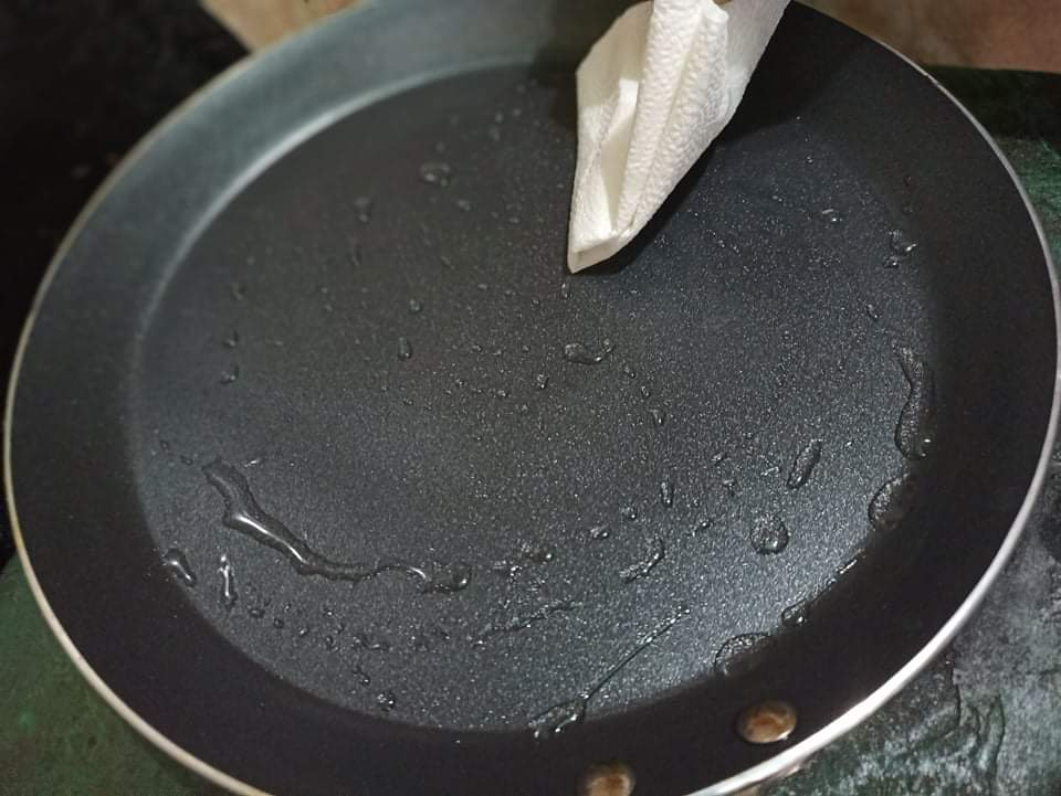 - এরপর আমি একটি প্যানে পরিমান মত তেল দিয়ে সেটাকে একটি টিস্যু দিয়ে মুছে দিয়েছি।