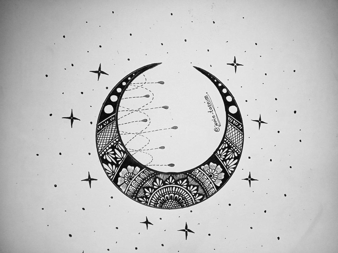 এখন ম্যান্ডেলা আর্ট আরো সুন্দর দেখানোর জন্য চাঁদের মাঝে নিখুঁত নকশা এঁকে নিব। এবং চারপাশে অনেকগুলো তারা এঁকে নিব।