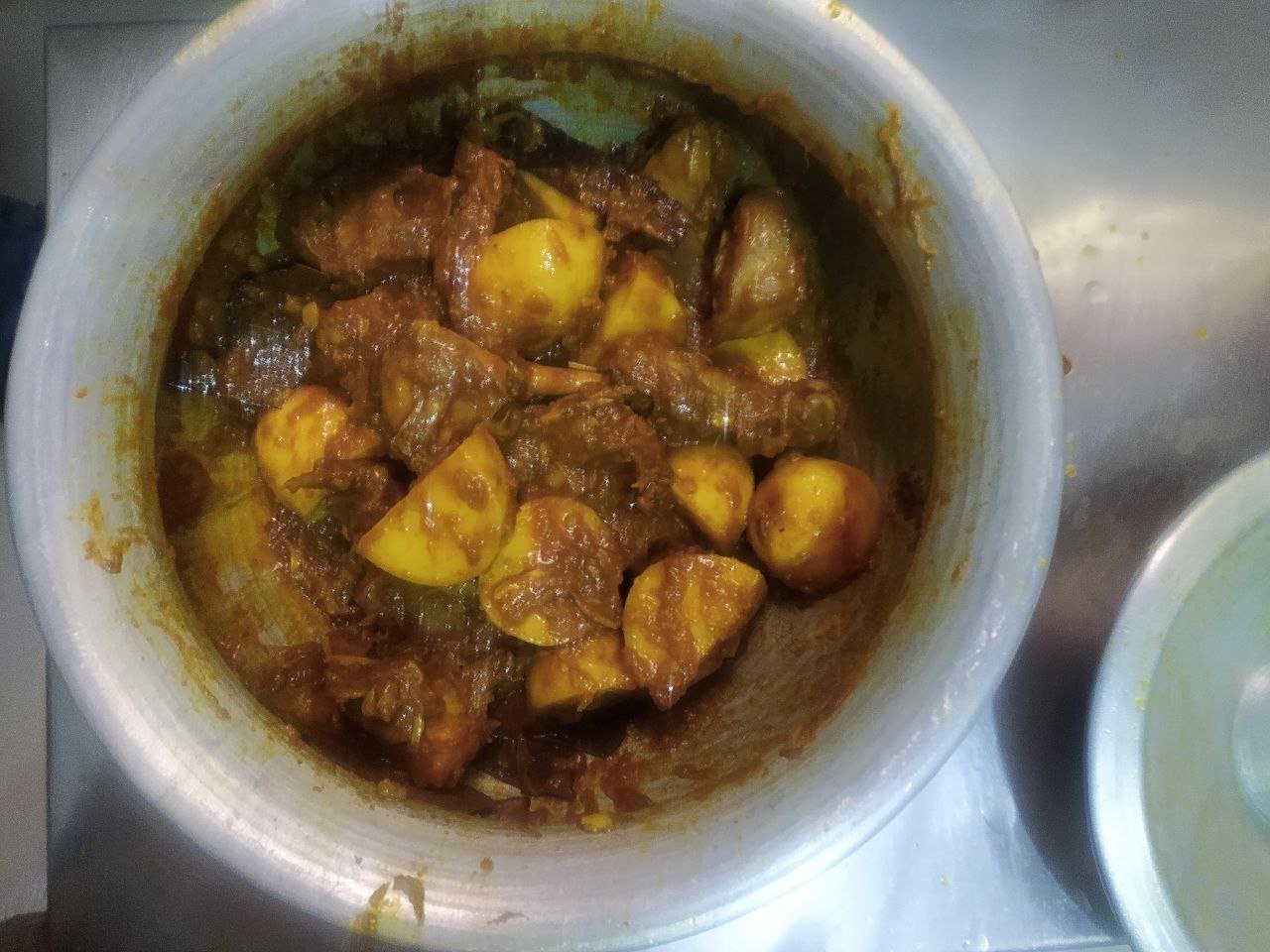 তারপর মাংসটা কষিয়ে মোটামুটি ভাবে একটু সিদ্ধ হওয়ার পর আলু গুলো দিয়ে দিলাম।