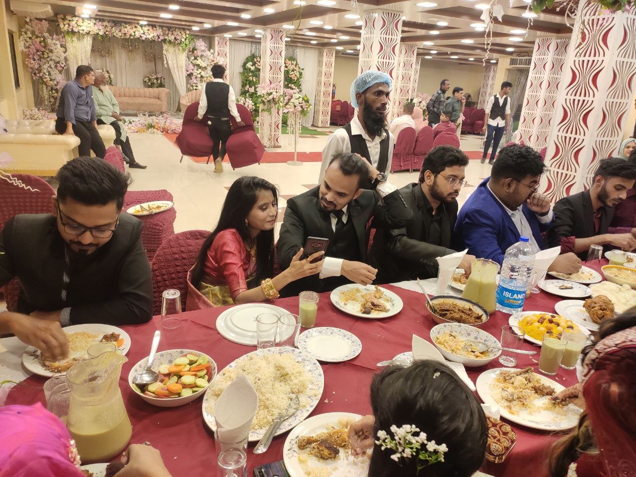 আপনারা দেখতেছেন যে কমিউনিটি সেন্টারটি অনেক সুন্দর ভাবে সাজানো আর অনেক বড়। সবাই সুন্দর ভাবেই সময় পার করেছে। খাওয়া দাওয়ার আইটেমের মধ্যে রয়েছে পোলা,রোস্ট,ডিম, গরু,মুরগের মাংস,সালাদ,কোমল পানি সহ আরো অনেক কিছু।