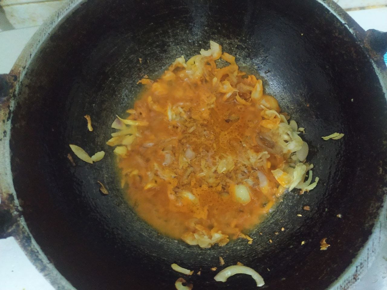 পেয়াঁজ গুলো হলুদ হওয়ার পরে আদাঁ রসুন দিয়ে দিলাম। তারপর হলুদের গুড়া,মরিচের গুড়া,জিরার গুড়া গুলো একটি পাটিতে নিয়ে একটু পানি দিয়ে সব গুলো এক সাথে মিক্স করে কড়াইতে দিয়ে দিলাম।