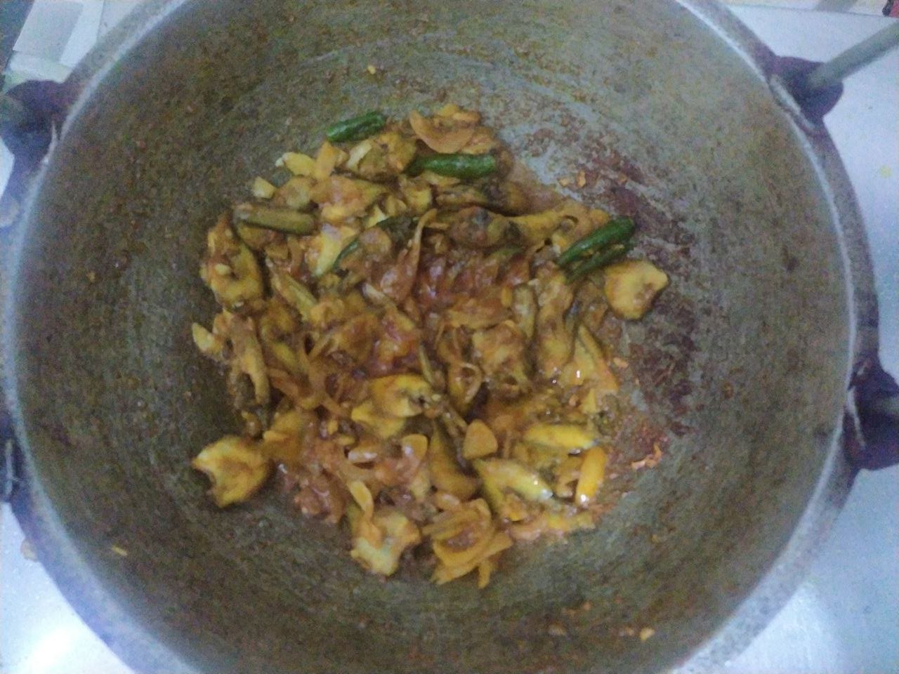 চার থেকে পাচঁ মিনিট পরেই মাছ গুলো সিদ্ধ হয়ে পানিটা শুকিয়ে গেল। এখন নামিয়ে নিলেও খাওয়া যেত। কিন্তুু আমি শুকনা শুকনা ভাজি করার চিন্তা করলাম। তাই আরো কিছুক্ষন রেখে দিলাম।