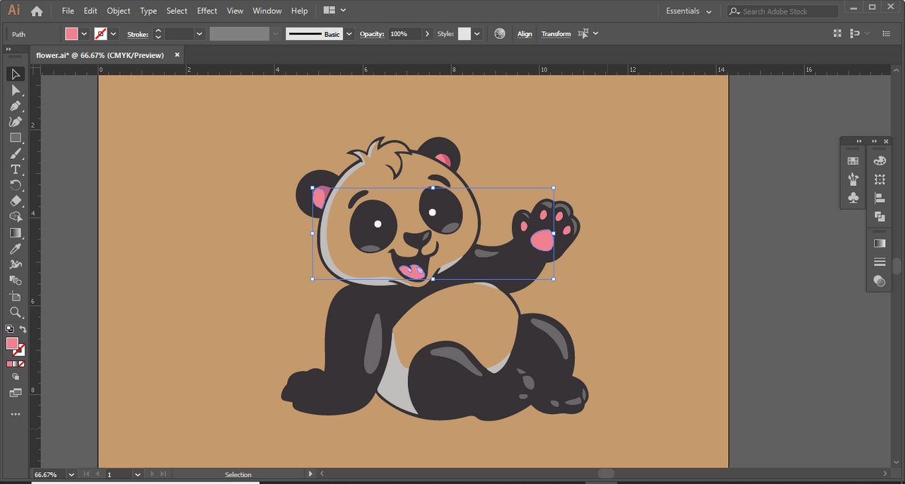 প্রথমে এডোবি ইলাস্ট্রেটর সিসি সফটওয়্যারটি অপেন করে নিউ ফাইল থেকে একটি ডকুমেন্ট নিয়ে নিলাম। আমি আজকে যে চিত্রটি অঙ্কন করবো তার জন্যে নির্ধারিত কোন সাইজ নেয় নি। আমি আমার সুবিধা মতো একটি সাইজ নিয়ে ডকুমেন্ট রেডি করে টোলবার থেকে পেন টুল নিয়ে পান্ডার মাথার চুলের অংশটা অঙ্কন করলাম।