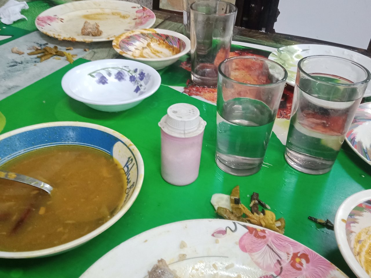 হোটেলটা তেমন একটা ভাল না তবে অতটাও খারাপ না। সেখানকার ভেতরে বলতে গেলে এই হোটেলটাই সবচেয়ে ভালো ছিল। সেখানে আমরা পৌঁছে প্রথমেই আগুন দেওয়ার জন্য বেসিনে যাই আর ভালো করে সাবান দিয়ে হাত মুখ ধুয়ে নেই। গাড়ির মধ্যে বসে থেকে শরীরের অবস্থা একদম অসহ্য কর লাগছিল। তারপর চেয়ারে গিয়ে বসতেই একটা ছেলে আছে। আর আমরা কি খাবো তা জিজ্ঞেস করে। যেহেতু আমাদের অনেক ক্ষুদা লাগছিল তাই আমরা ভাত খাওয়ার সিদ্ধান্ত নিলাম।