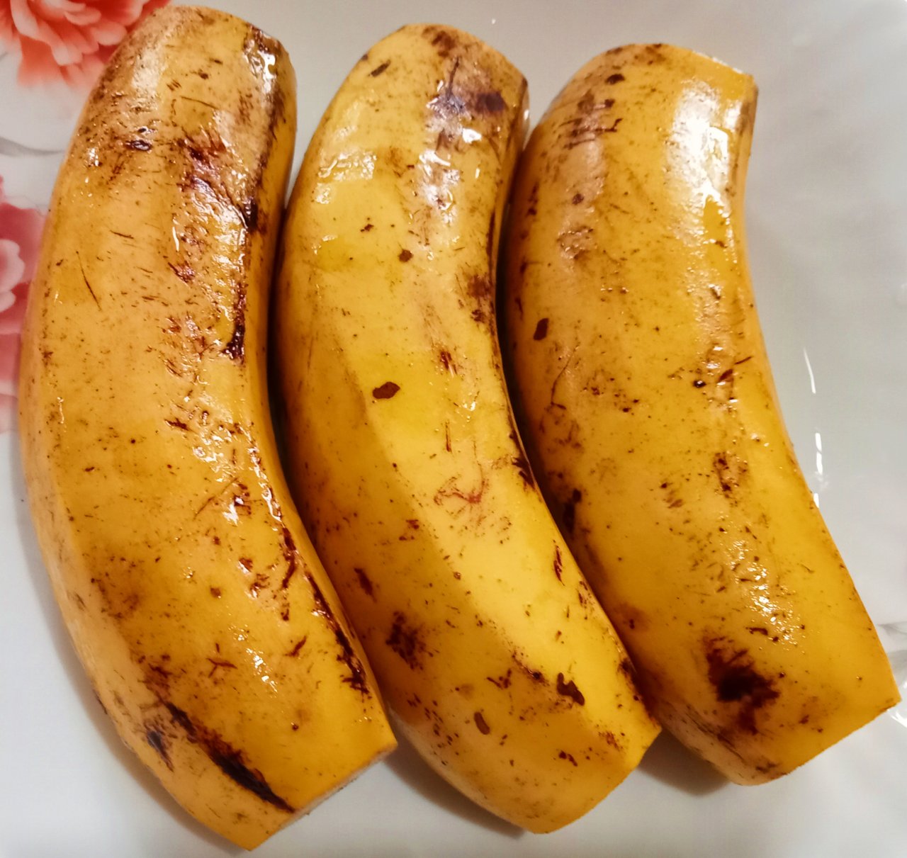 এবার কলা দুই টিকে হাত দিয়ে পেস্ট করে নিতে হবে। উপরে দেয়া চিত্রের মতো করে।