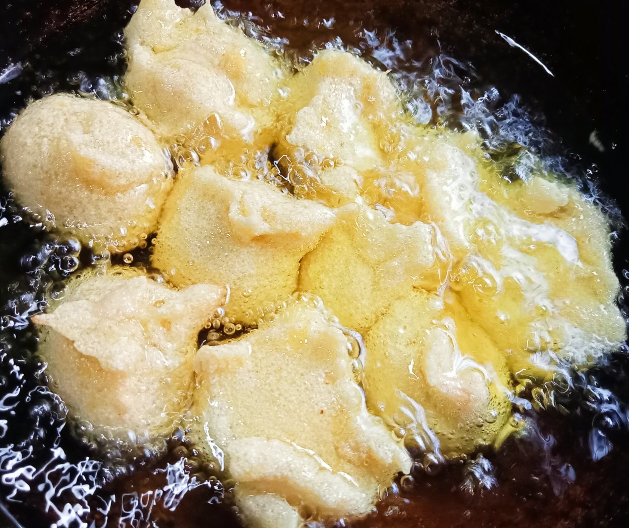 এবার গরম তেলে ছেড়ে দেবার পর কিছুক্ষণ ভাজা হলে নিচের অংশ গুলো যখন লাল হয়ে আসবে, তখন আবার সবগুলো গোলা উল্টে দিতে হবে।