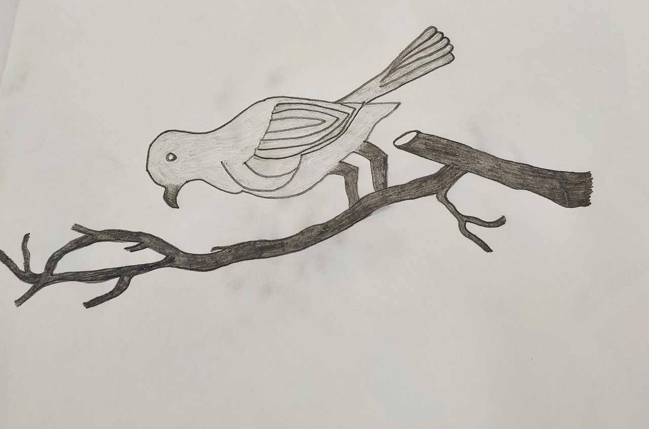 ধাপঃ-৩ঃতারপর ডালের উপরে একটা পাখির চিত্র অংকন করে নিতে হবে।