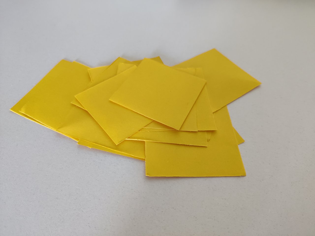 - ৬×৬ সে. মি. সাইজের হলুদ রংয়ের বেশ অনেকগুলো কাগজ কেটে নিব।