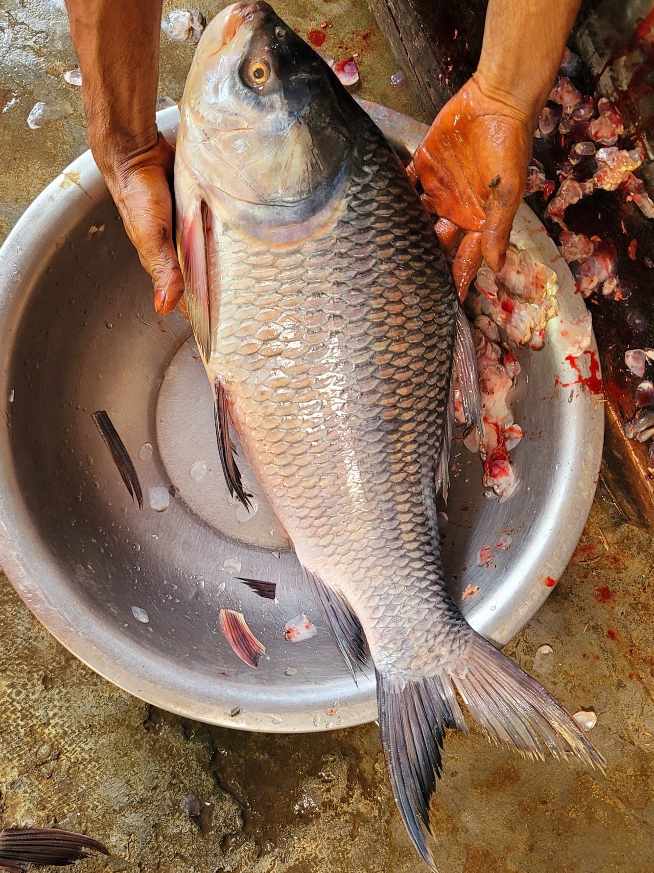 তাই আমি দাম জিজ্ঞেস করলাম এবং ওজন দিতে বললাম কত কেজি হয়। কাতলা মাছ ওজন দেওয়ার পর ৩কেজি ৩০০ গ্রাম হলো। দোকানদার কাতলা মাছের দাম চাইলেন প্রতি কেজি ৪৫০ টাকা করে। যেহেতু বাসা থেকে বলে দিয়েছে কাতলা মাছ কিনতে, আর যেহেতু একটি কাতলা মাছই ছিল তাই ভাবলাম এটাই কিনতে হবে। তবে আমি প্রথমে দাম কমিয়ে বললাম যে ৩০০ টাকা কেজি দিব। সাধারণত মাছের দামের খুব বেশি পার্থক্য হয়না এই বাজারে। মোটামুটি কাছাকাছি দাম চেয়ে মাছ বিক্রি করে। কিন্তু আমি ৩০০ টাকা কেজি বলার পর দোকানদার বললো ৩৫০ টাকা কেজি হলে দিয়ে দিবে। আমি বললাম ৩০০ টাকা কেজি হলে আমি নিব। দোকানদারও ৩০০ টাকা কেজি কাতলা মাছটি আমাকে দিয়ে দিল। সত্যি বলতে আমি অনেকটা অবাক হয়েছি এত পার্থক্যে কাতলা মাছটি বিক্রি করার পর।