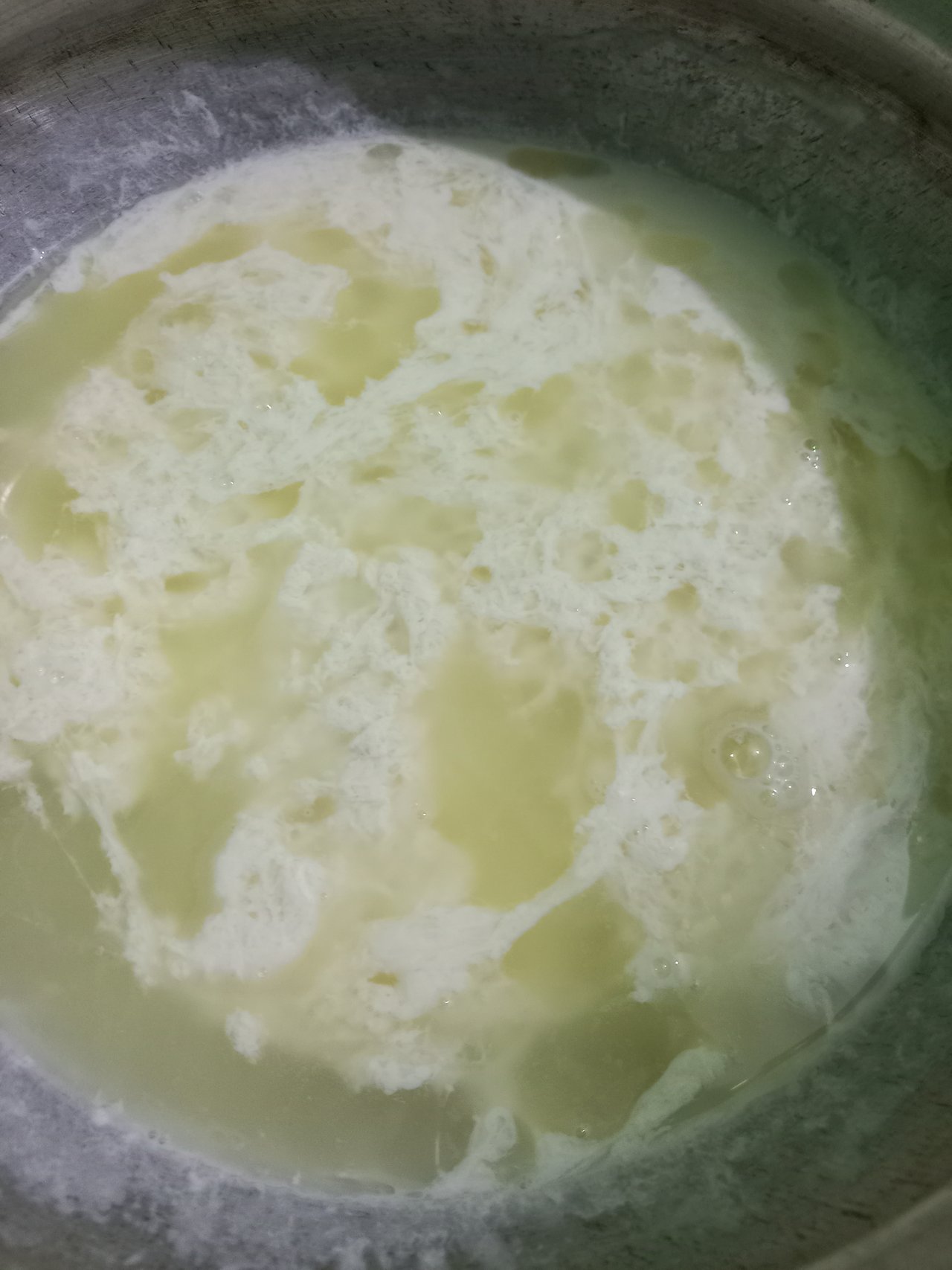 - তারপর ওই দুধগুলোতে এককাপ ভিনেগার দিয়ে কিছুক্ষণ নাড়বো। কিছুক্ষণের মধ্যেই এগুলা চাকা ধরে যাবে।