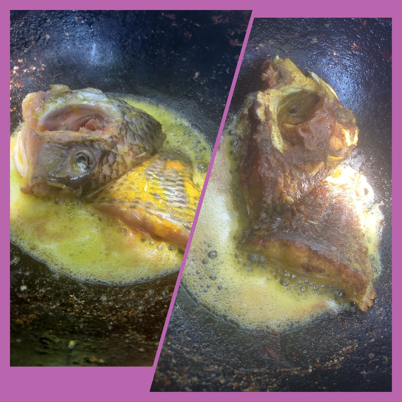 - আরেকটি কড়াইয়ে তেল দিয়ে তার মধ্যে মাছগুলো ভেজে নিলাম।