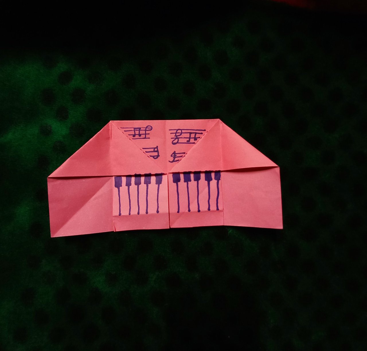 - এবার দু দিক থেকে ভাজ টেনে পিয়ানোর আকৃতি করে নিলাম।