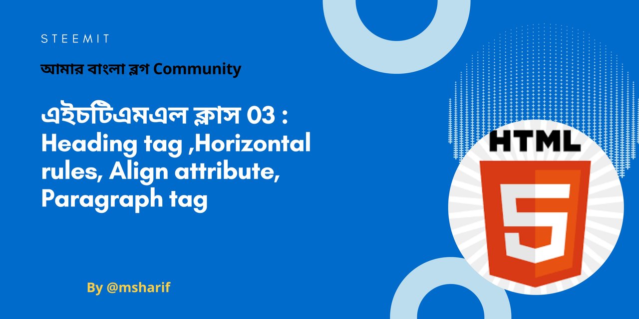 সবাই কেমন আছেন? এইচটিএমএল এর তৃতীয় ক্লাসে আজকে আমরা শিখব কিছু গুরুত্বপূর্ণ ট্যাগের ব্যবহার এবং আরো গুরুত্বপূর্ণ কিছু অংশ যা এইচটিএমএল এর ব্যবহারকারীদের জানা খুবই বেশি প্রয়োজন। আজকে আমরা শিখব Heading, horizontal rules, paragraph tag, align attribute. এসকল জিনিস যেমন এইচটিএমএলে আমরা ব্যবহার করতে পারব ঠিক তেমনি আমরা Steemit পোস্ট করার সময় ব্যবহার করতে পারব। চলুন আমরা আমাদের ক্লাস শুরু করি।