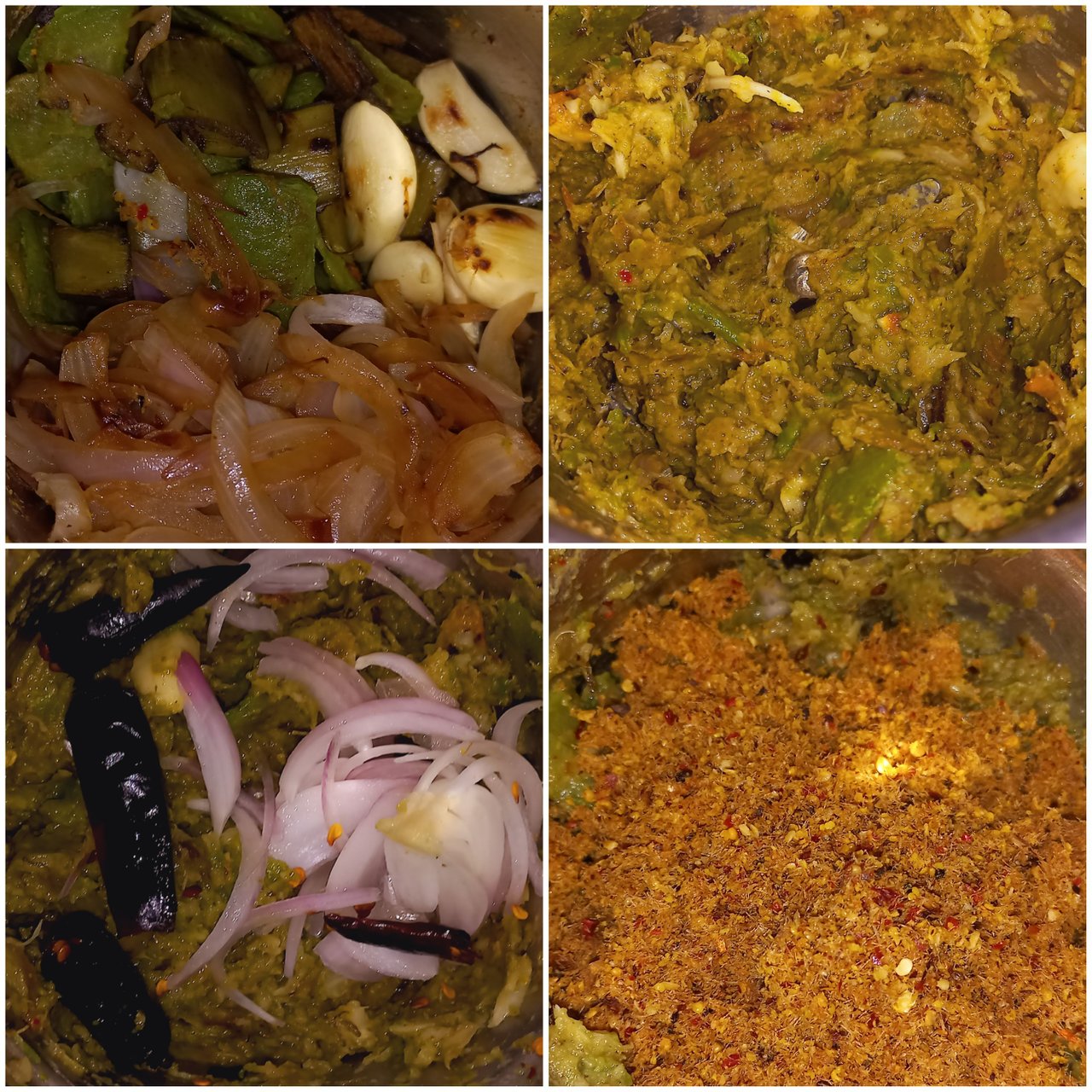 তারপর শুকনো মরিচ গুলোকে ভালোভাবে ভেজে নিতে হবে। এরপর সবগুলো উপাদান একত্রিত করে নিলাম।