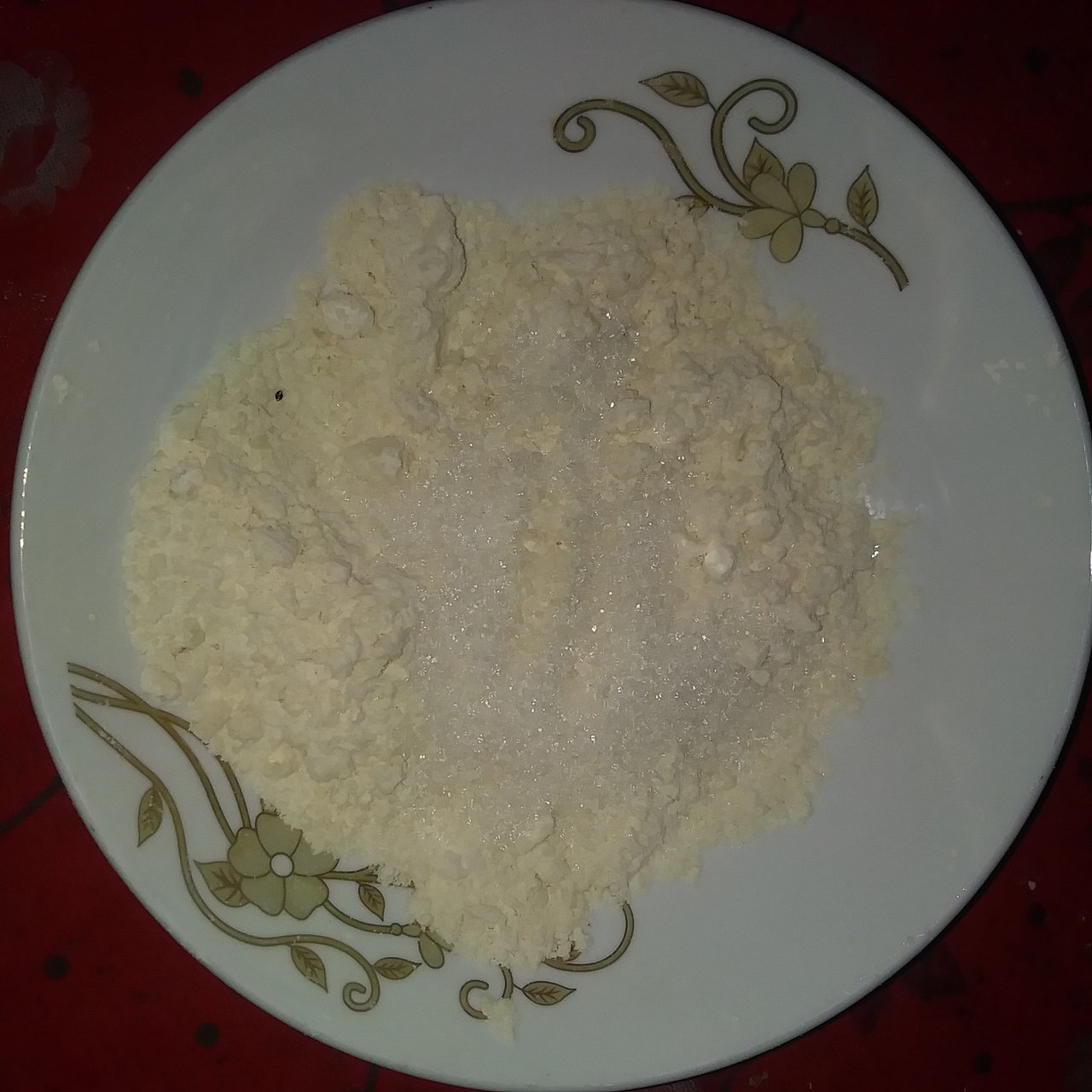 প্রথমে আমি ময়দা, লবন ও চিনি নিয়েছি।