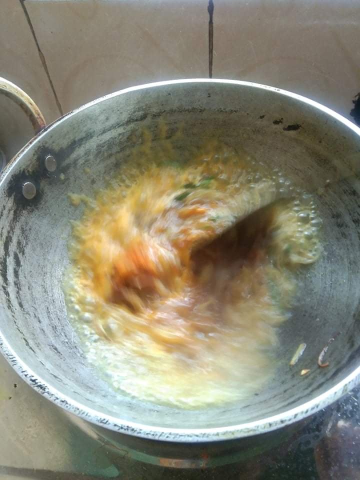 তেল গরম হওয়ার পর আমি পেঁয়াজ কুচি গুলো ছেড়ে দিলাম।