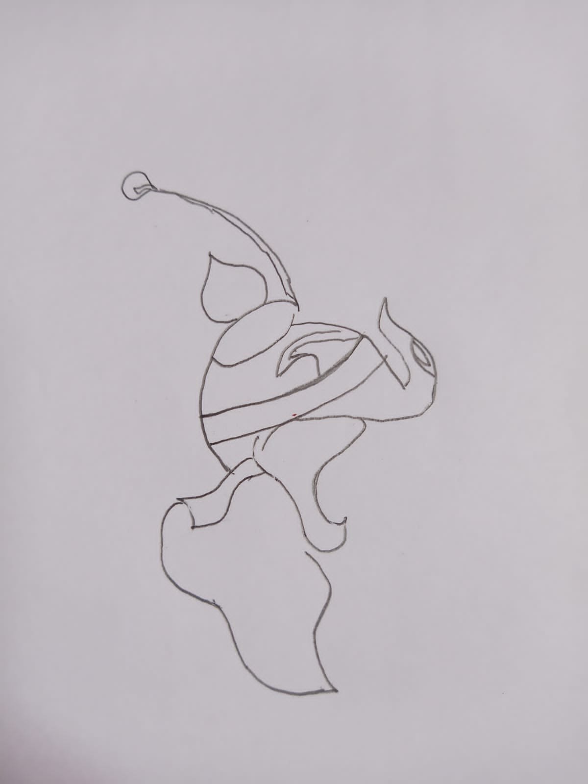 মুকুট টা হয়ে গেলে মাথার দিক টাও একই সাথে হয়ে যায়। এরপর কানের অংশ আঁকতে শুরু করি। আপনারা সবাই জানেন গণেশ ঠাকুরের মাথায় গজানন এর মস্তক লাগানো। মুখের আকৃতি তাই গজের মত আসবে।