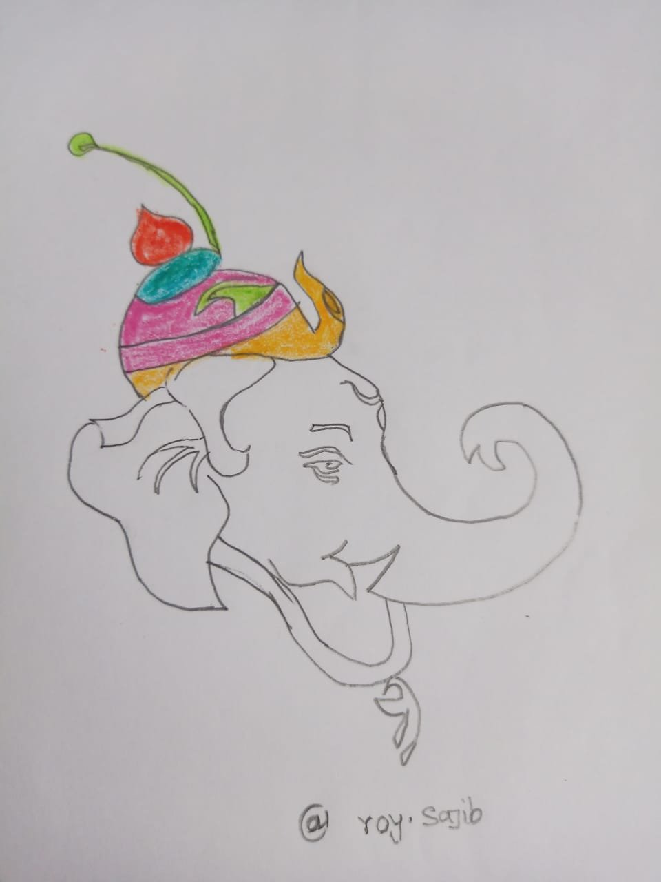 গতকাল গণেশ চতুর্থী গেছে। বেশ ধুমধাম করে পালন করে ইন্ডিয়াতে। আমাদের এই দিকে খুব বেশি জাকজমোক অনুষ্ঠান হয় না বললেই চলে। বাড়িতে ভাগ্নে অভ্র যখন খুব দুষ্টামি শুরু করে দিদি তখন আমাকে বললো ভাগ্নে কে নিয়ে কিছু একটা ছবি আঁকতে। তাহলে চুপ করে থাকবে। আমিও ভাবলাম এই সুযোগে গণেশ ঠাকুরের একটা ছবি একে ফেলি। বাড়িতে যেহেতু রং পেন্সিল ও আছে তাই রং টাও করতে পারবো। আবার ভাগ্নে টাও চুপ থাকবে।