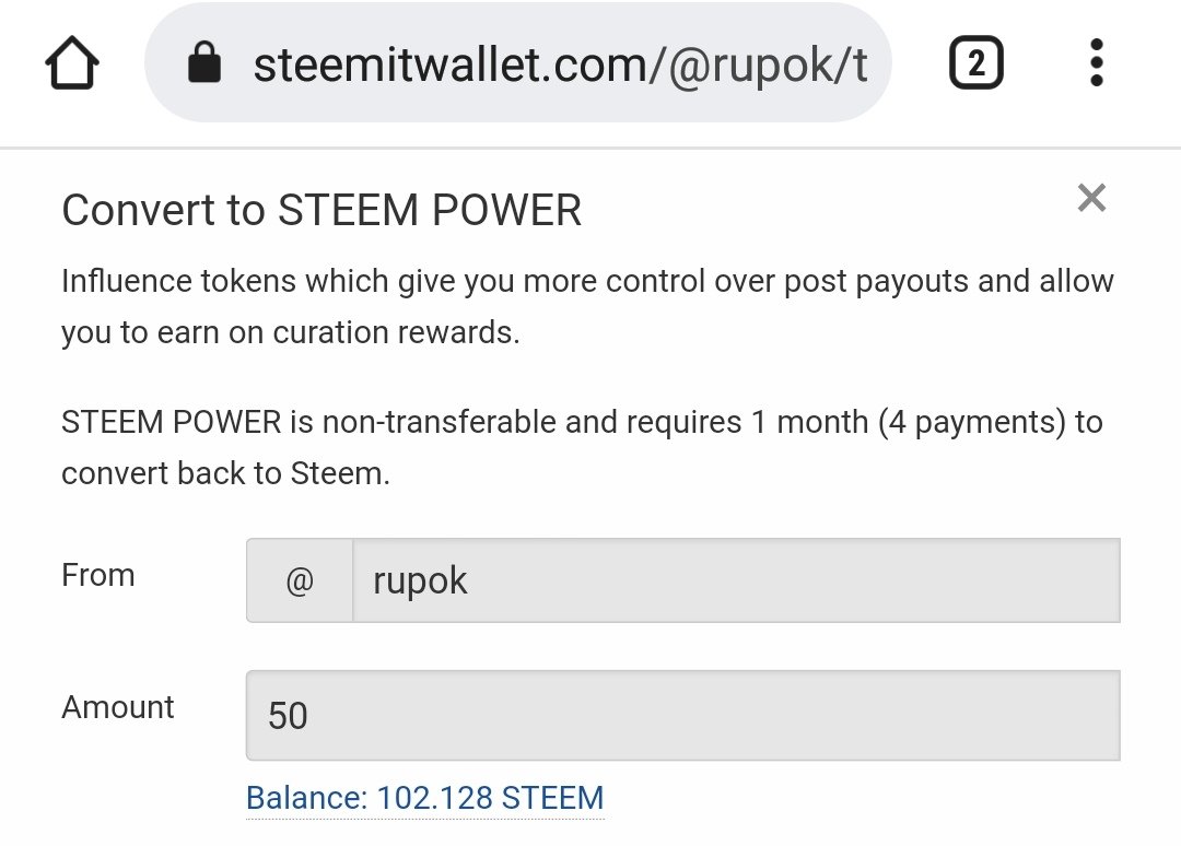 এখন আমি অ্যামাউন্টের ঘরে যে পরিমাণ স্টিম আমি পাওয়ার আপ করতে আগ্রহী সেই পরিমাণটা লিখলাম। তারপর নিচে গাঢ়ভাবে পাওয়ার আপ লেখাটার ওপর ক্লিক করলাম।