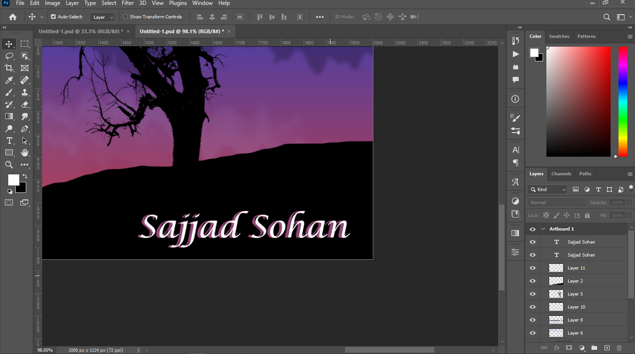 ব্যাকগ্রাউন্ড একটা গ্রেডীয়ান কালার ব্যবহার করলাম এবং আকাশে তৈরি করে দিলাম সাদা মেঘ।