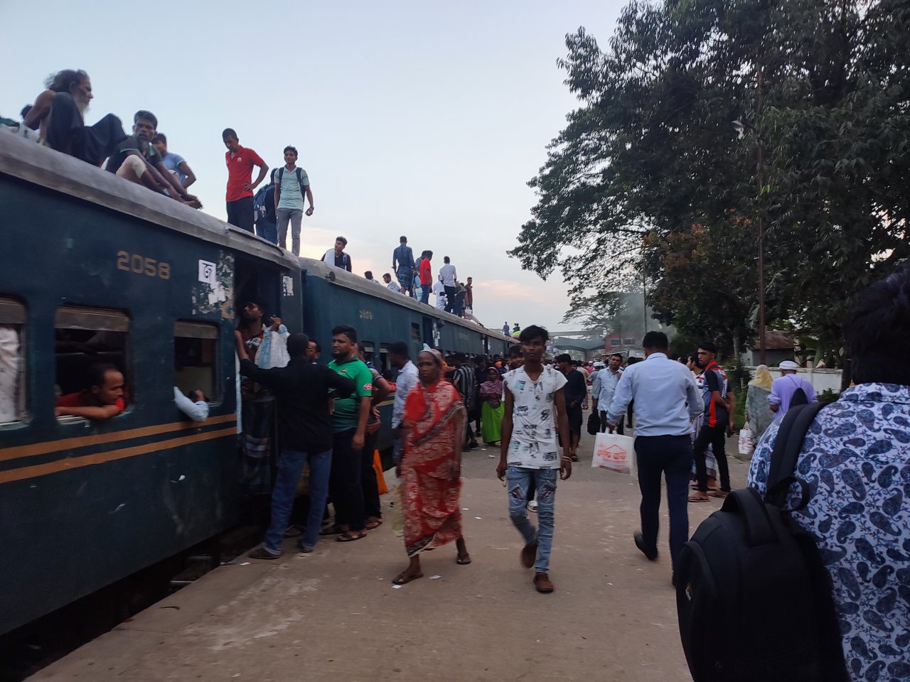 জাস্ট বুঝতে পারছেন ট্রেনের ভিতর কি অবস্থা হতে পারে আমি আর কিছু বলতে পারছিনা। সবাইকে বললাম রেস্ট নাও কিন্তু স্টেশনের বাইরে আমি আর এখানে একমুহূর্ত থাকবো না। আমার কথা মত সবাই বাহিরে গেলাম তারপর হাত মুখ ধুয়ে পানি টানি খেলাম এবং বন্ধুকে ফোন করলাম এখনও গন্তব্য অনেক দূর……………
