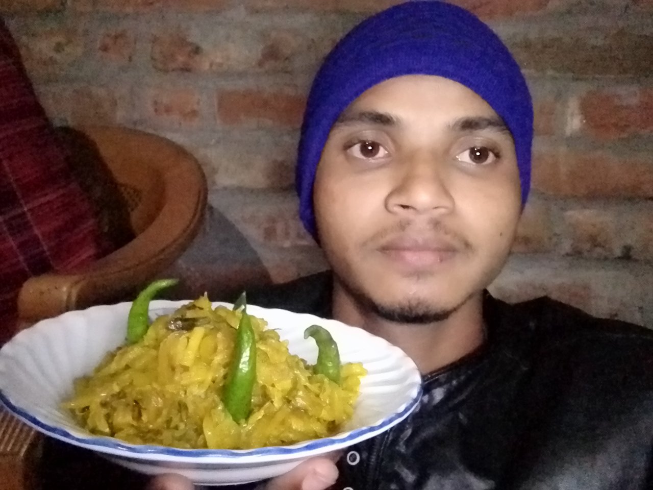 পরিষ্কার করে নেওয়া পাতাকপি ভাজি গুলোকে হাতে নিয়ে নিজের সাথে একটি সেলফি তুলে দিলাম ।