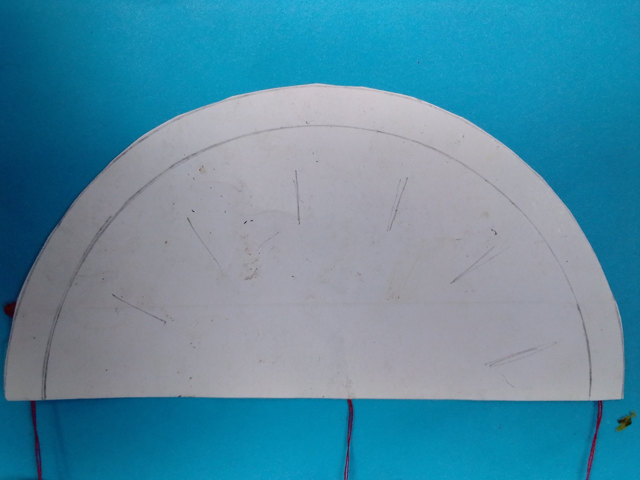এখন শক্ত একটি কাগজ গোল করে নিয়ে নিব । গোল করে নেওয়ার পর সেটাকে মাঝ বরাবর ভাজ করে নেব । তার সাথে তিনটি সুতা লাগিয়ে নেব ।