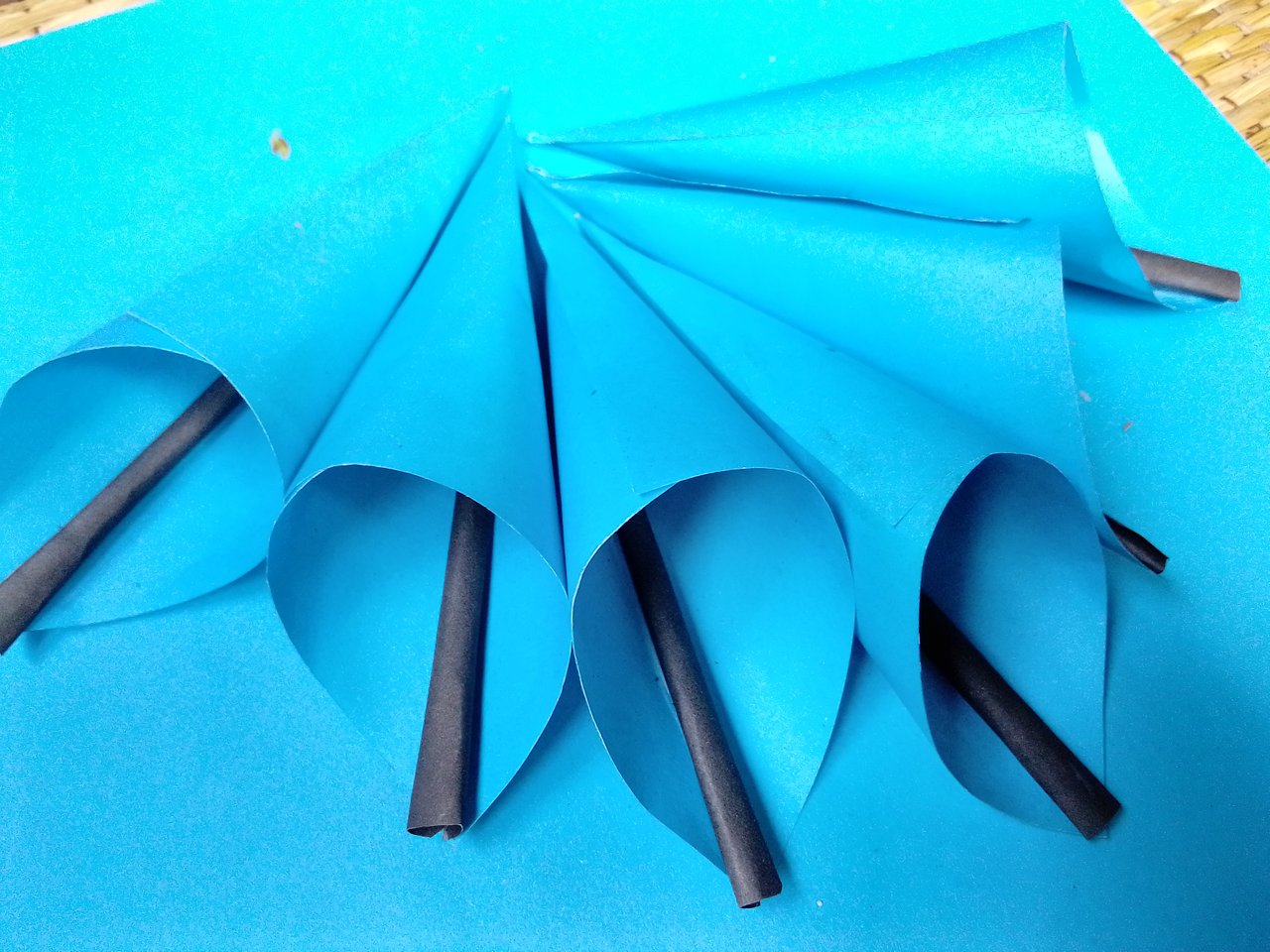 একই রকম করে কয়েকটি নীল পেপার কে গোল করে নিয়ে নেব ।