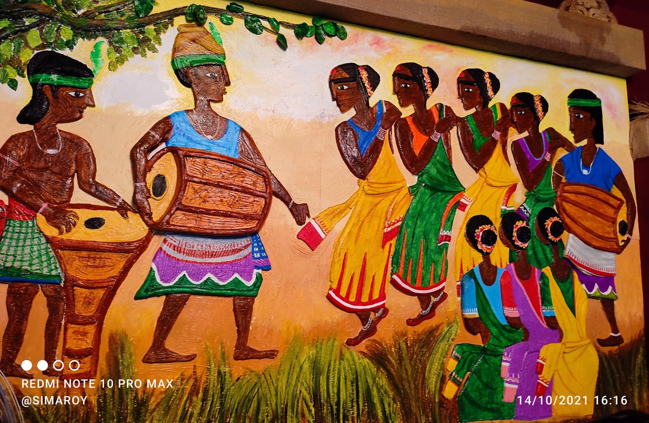 ●অনেক আর্টের মধ্যে আদিবাসীদের জীবন যাত্রা তুলে ধরা হয়েছে। তারা হাড় ভাঙা পরিশ্রম করে সাদাসিধে জীবন যাপন করে তারই অনেক চালচিত্র আপনারা ছবির মধ্যে দেখতে পাবেন।